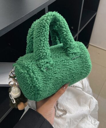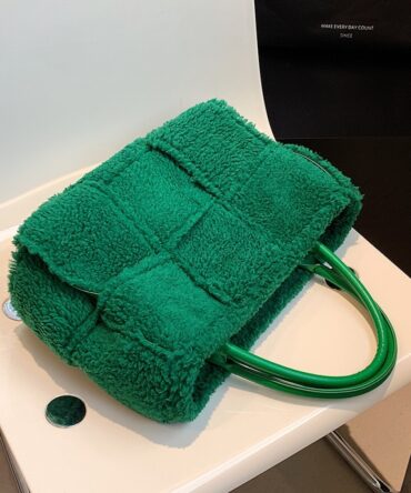 Askrykins Plald Fluffy Tote Bag With Inner Pouch in Green
