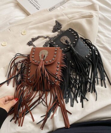 Askrykins Fringed Design Small Square flap bag in Brown