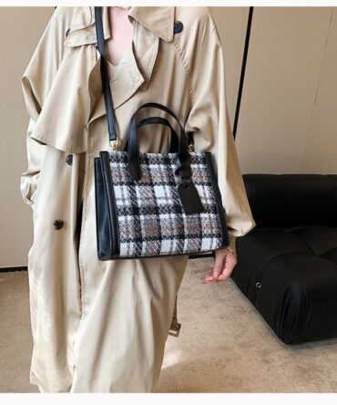 Askrykins Plaid Pattern Shoulder Small Tote Bag in Black