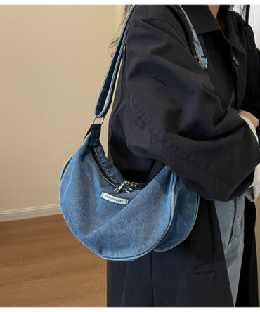 Ashrykins Edgy Stud Crescent Moon Shoulder Bag in Black