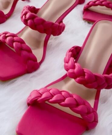 Olivia Wide Fit Plaited Heeled Sandals In pink