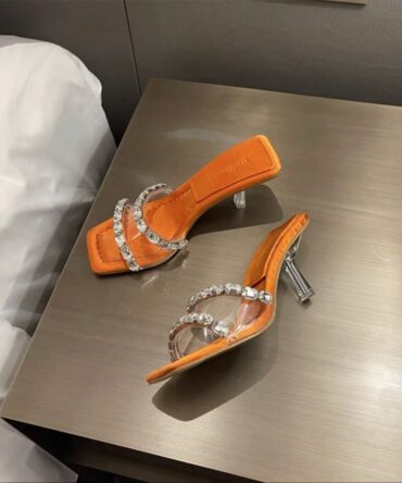 Askrykins Square Toe Sculptured Flared Block Heel Mule Sandal in Orange