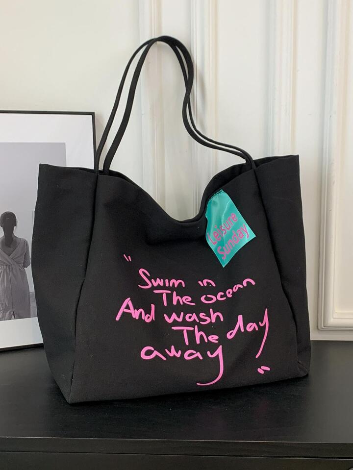 Brand new and Stay stylish and organized with this spacious canvas tote bag featuring a lazy and casual design, perfect for women