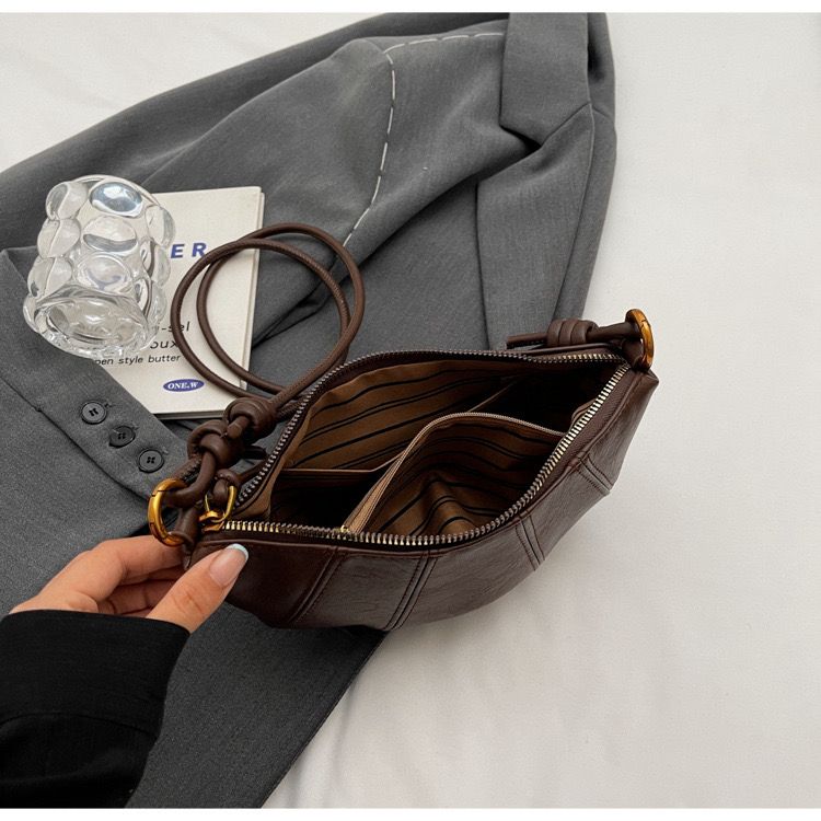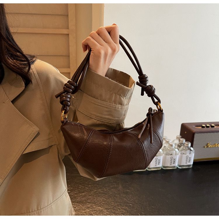 Warm, minimal, and quietly iconic — Cocoa Knot is your grab-and-go essential with high-style undertones. Wrapped in a velvety mocha tone and finished with a sculptural knotted handle, this mini bag delivers effortless cool in a cozy package. Compact but never compromising, it tucks right under your arm while still packing enough personality to turn heads.