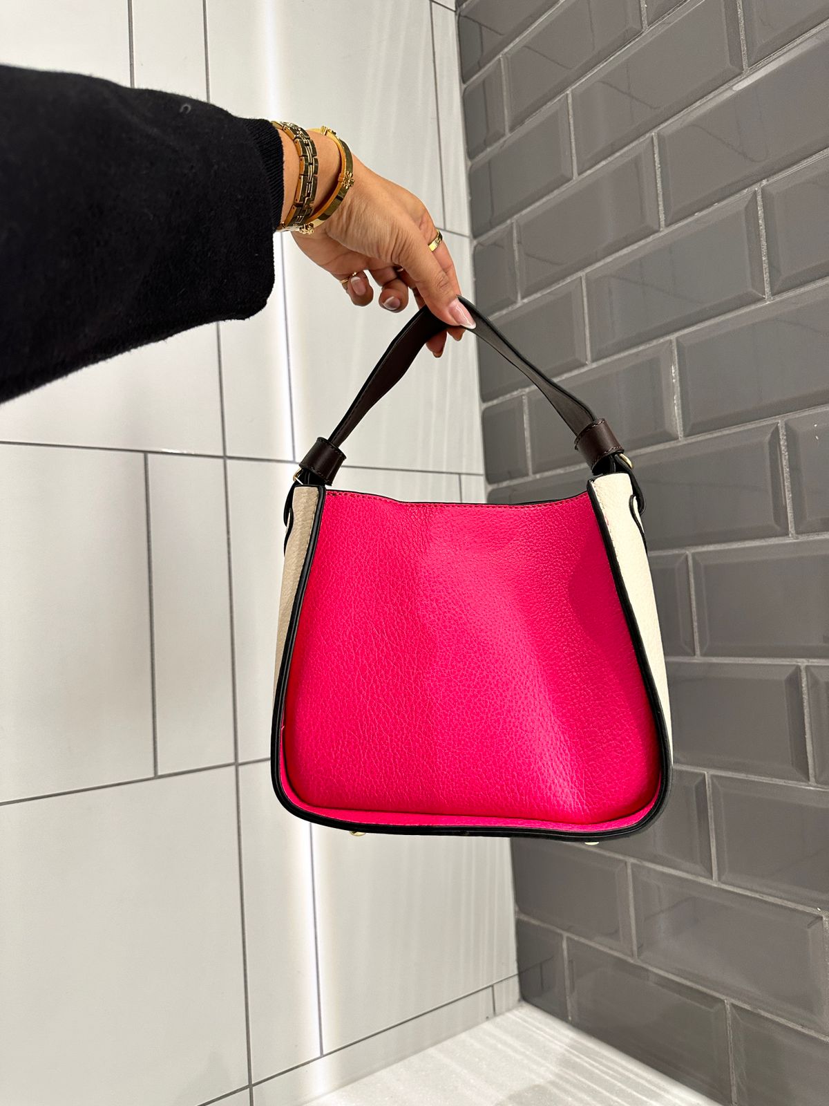 Be the first to review “Ashrykins Color Block Structured Bucket Crossbody Bag in Pink”