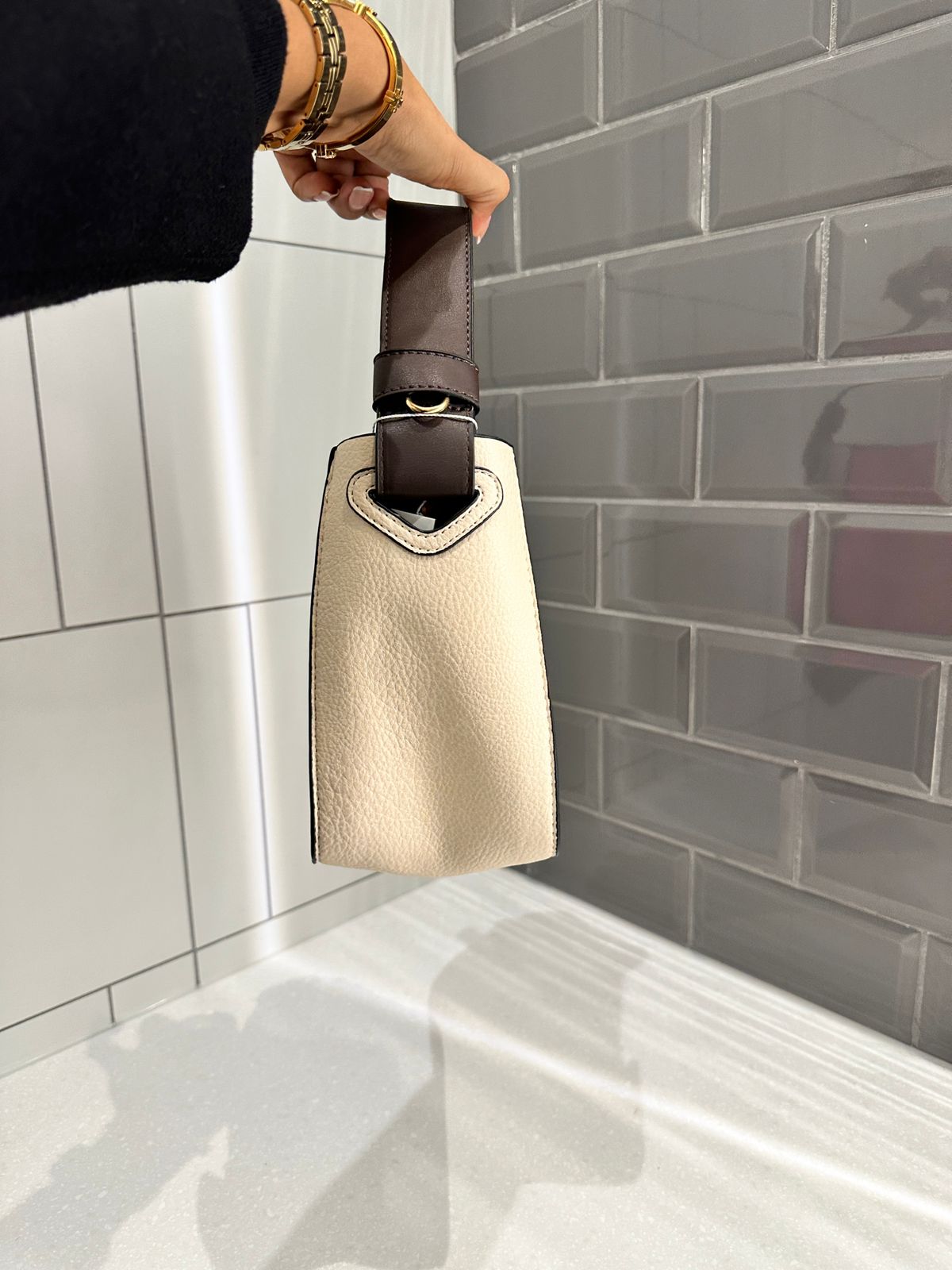 • Gold-tone hardware/ vegan leather