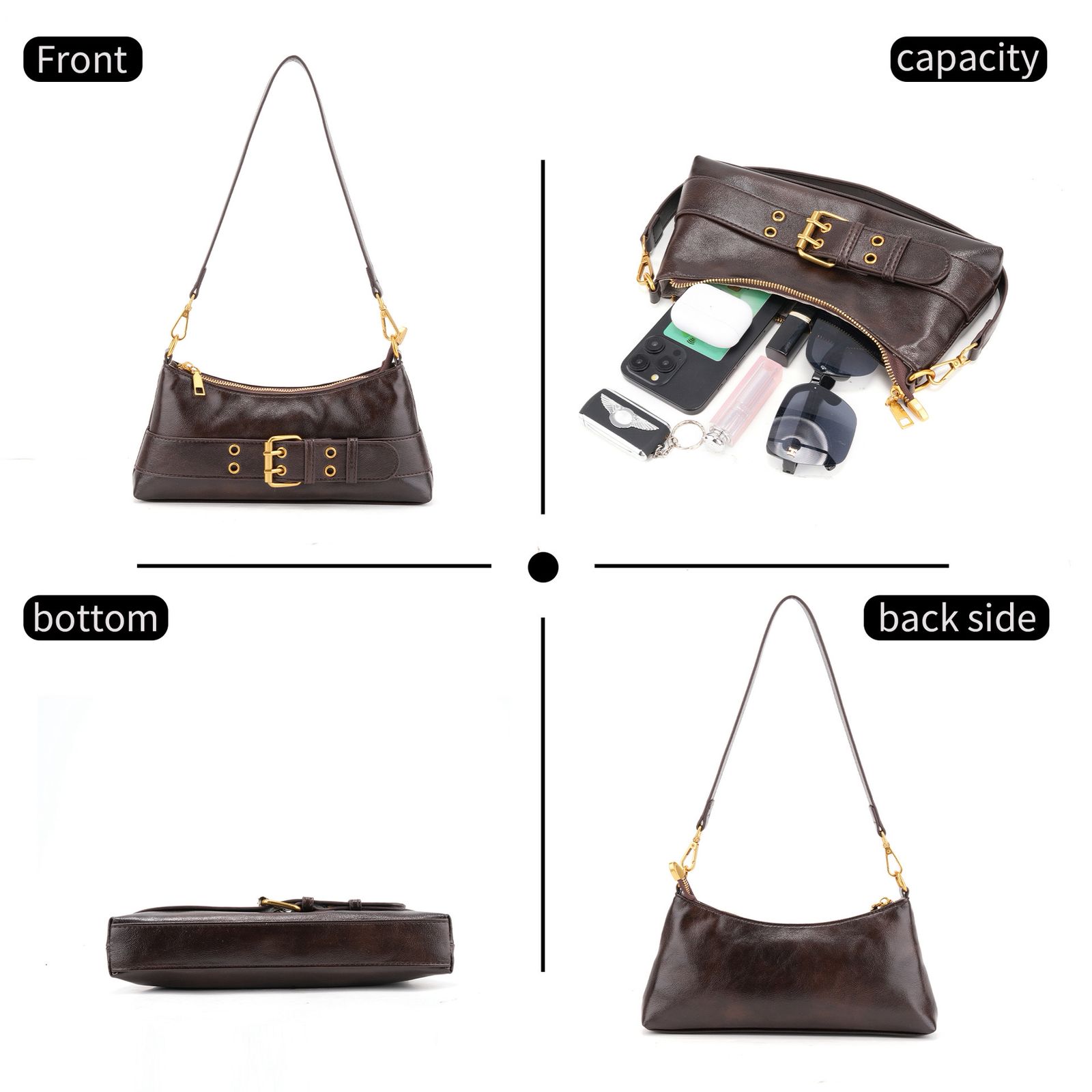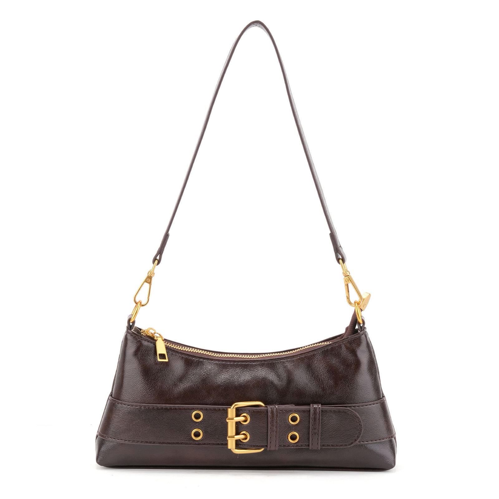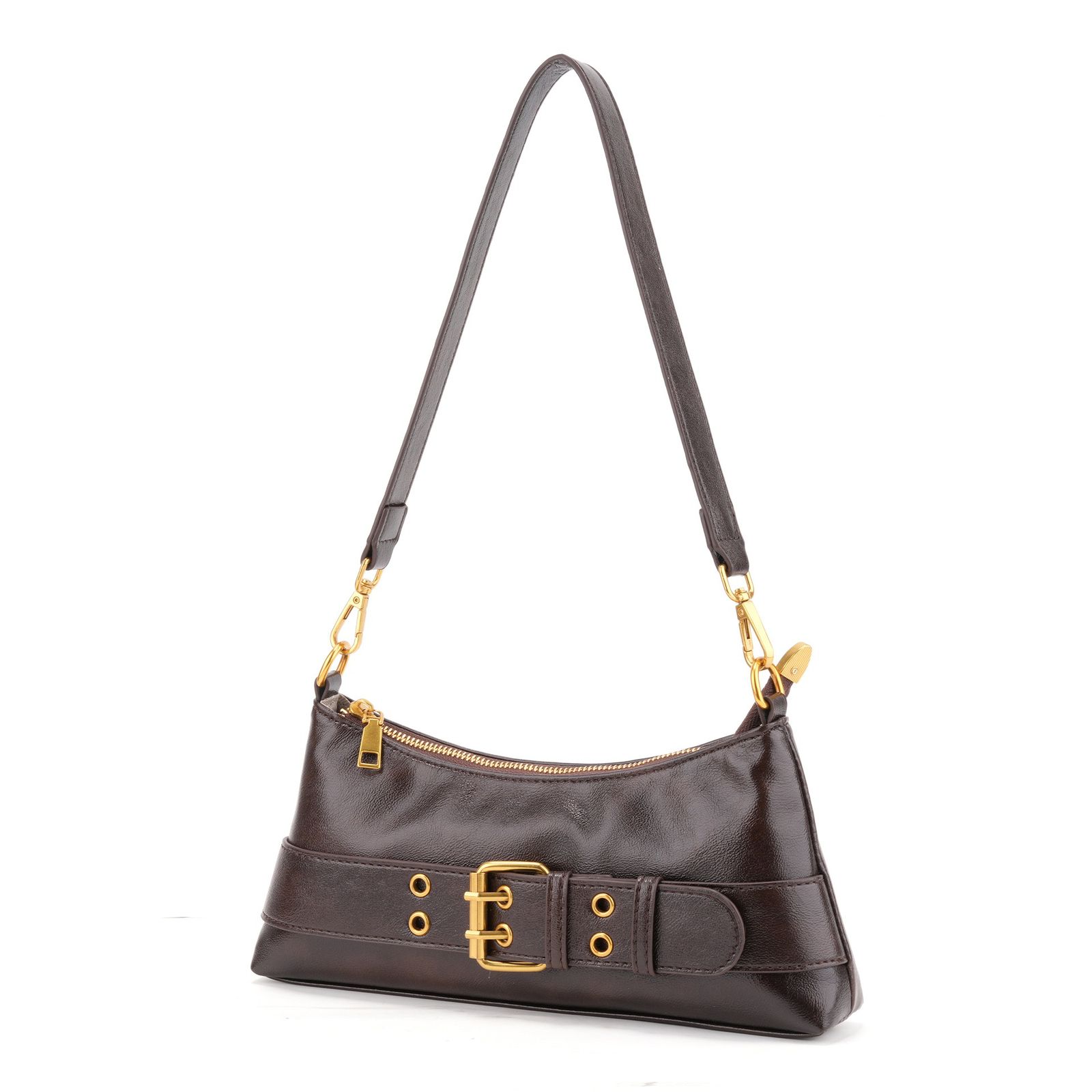 A sleek shoulder bag with a statement belt detail — minimal, but never basic.
