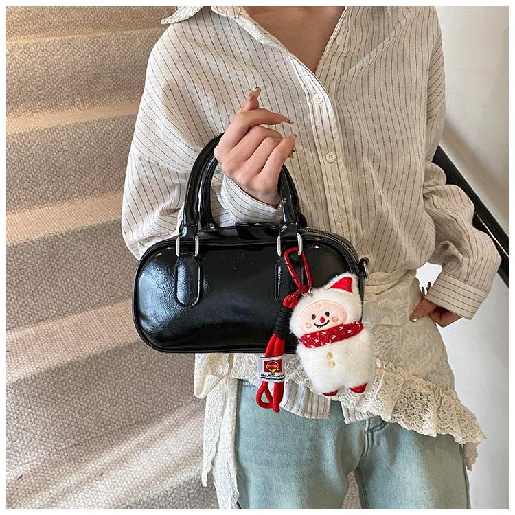 Meet the MidnightMeow Mini Tote—Ashrykins’ answer to bold cuteness and chic confidence. With a sleek patent black finish and structured mini silhouette, this bag is the ultimate style sidekick for girls who love edge with their sweetness. And that plush kitty keychain in its red hat and scarf? Instant conversation starter.
