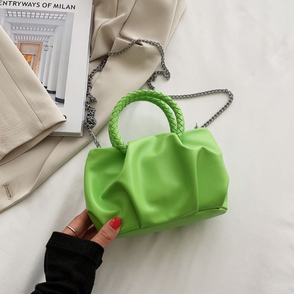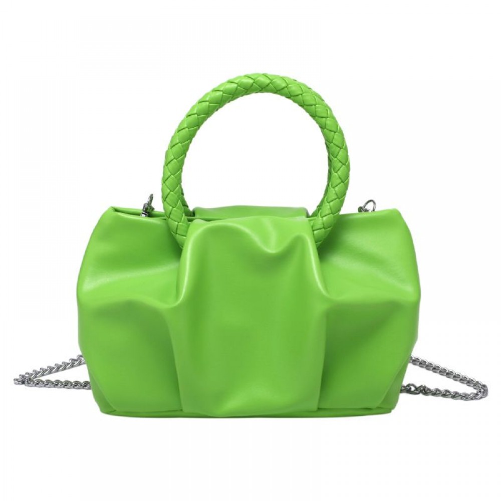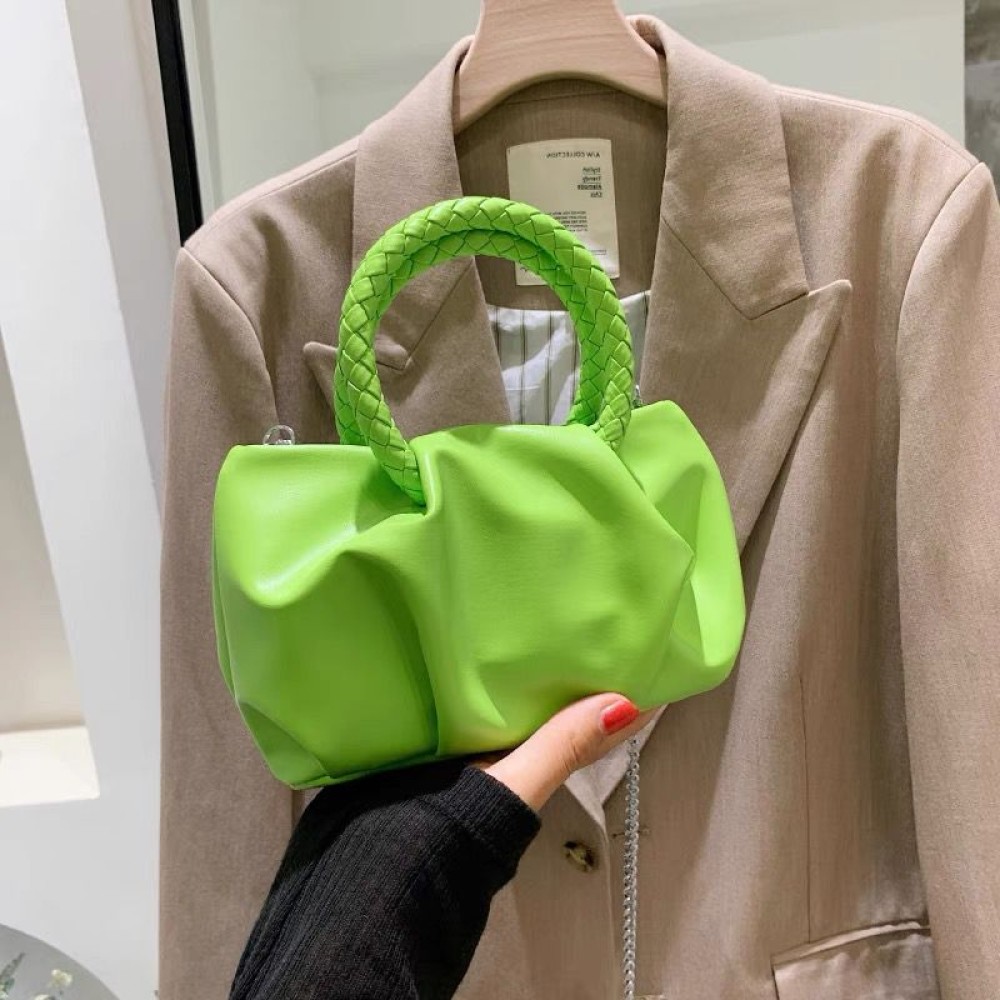 double handle Optional cross-body strap plaited strap in green small purse hand chain