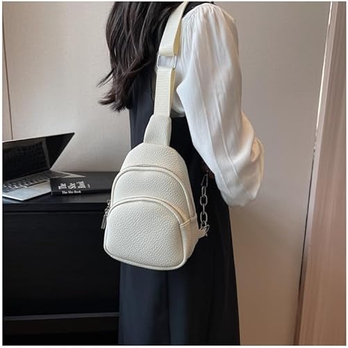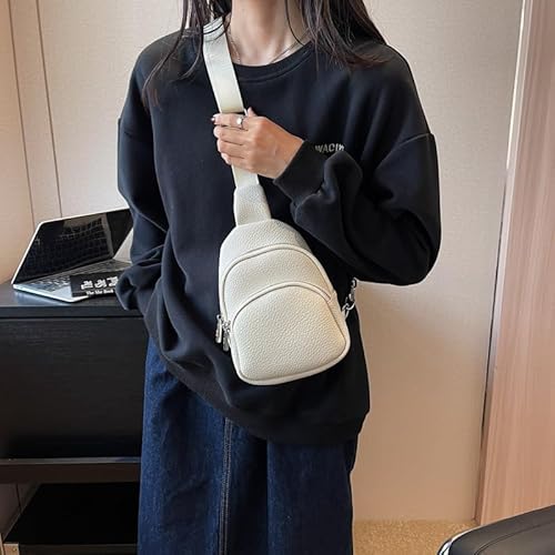 Ashrykins Mini Textured Pocket Front Fashion Sling Bag in Beige