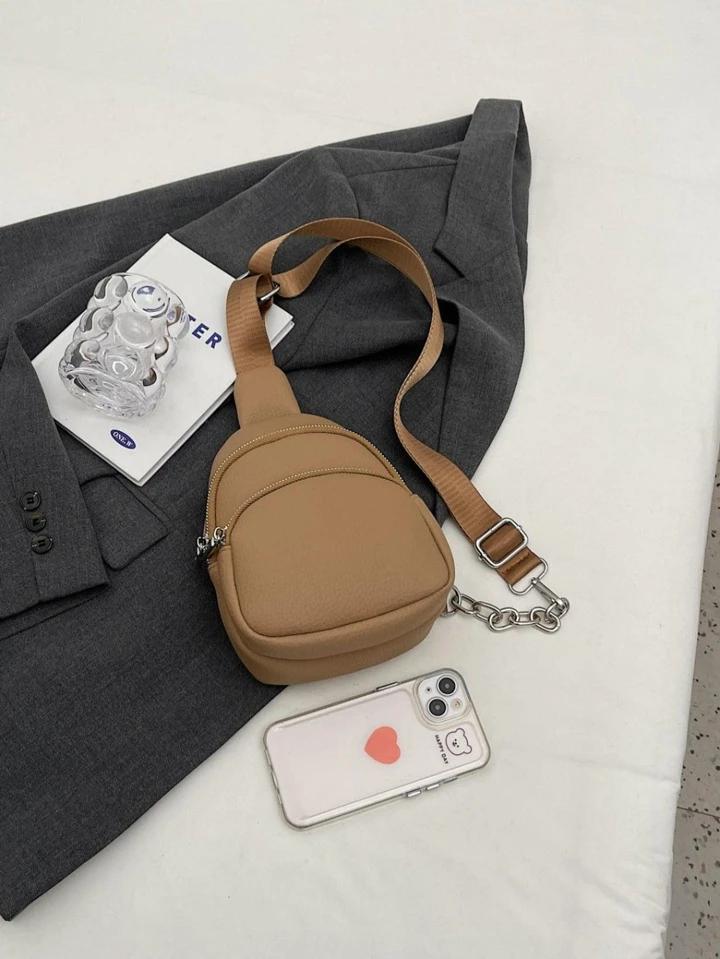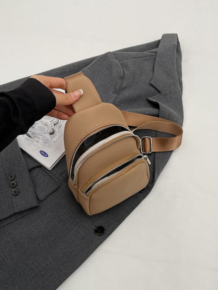 Ashrykins Mini Textured Pocket Front Fashion Sling Bag in Khaki