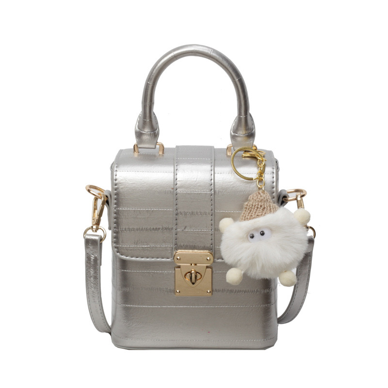 Indulge in the luxury of the Opulent Noir Treasure Bag, a statement piece designed for the modern, sophisticated woman. Crafted from premium silver leather with a structured box silhouette, this handbag exudes elegance and refinement. The gold-tone lock closure adds a regal touch, ensuring both security and style. Paired with a charming plush keychain, this bag blends luxury with a playful twist. Whether for a formal event or everyday glam, this bag is the ultimate fashion treasure.