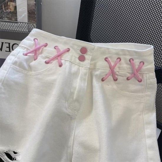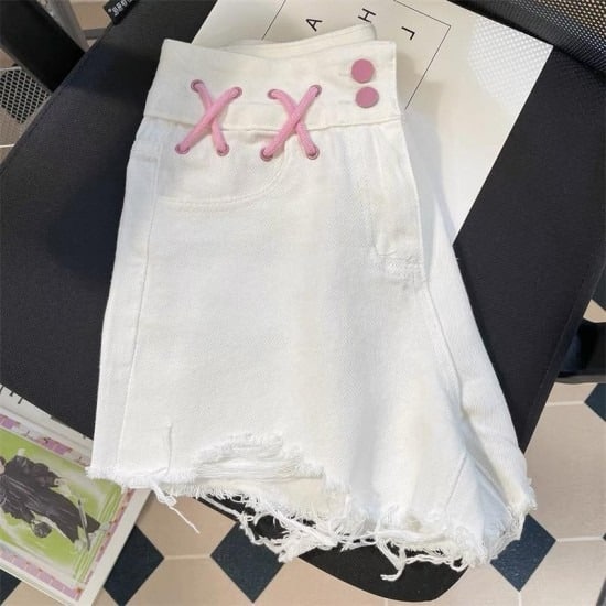 Love at first scroll High rise Belt loops Four pockets Raw-cut hem Regular fit