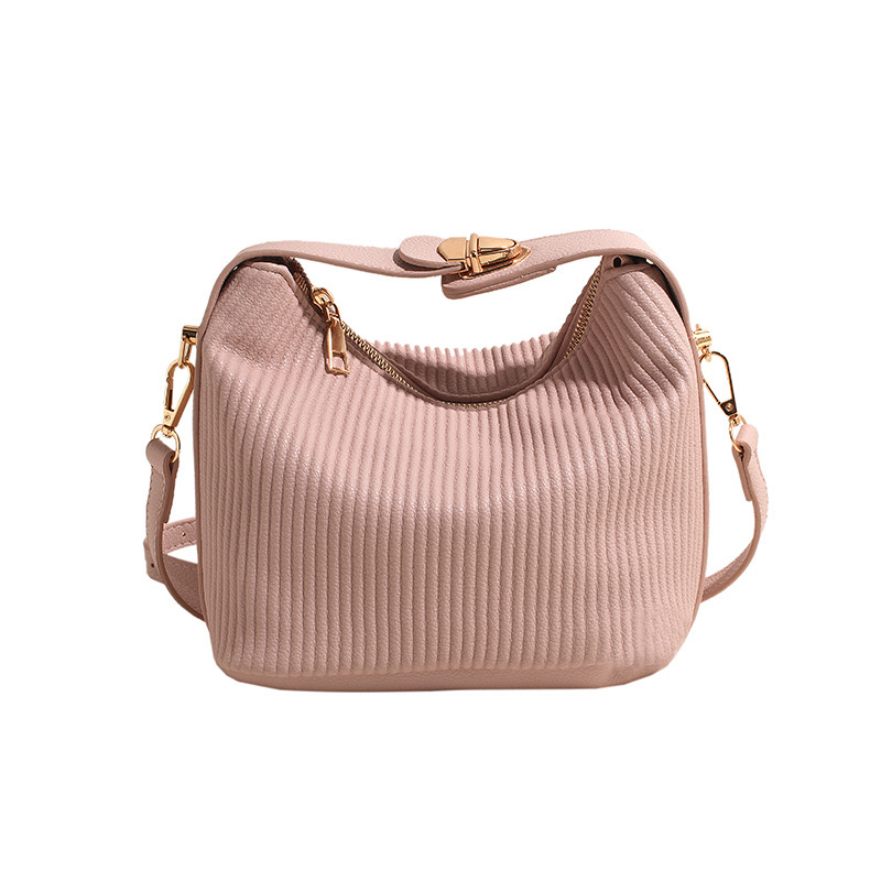 The Blush Elegance Shoulder Bag is a perfect mix of chic minimalism and modern sophistication. Crafted from soft, ribbed-textured faux leather in a beautiful blush pink shade, this bag offers a stylish yet functional design. The structured silhouette is complemented by gold-tone hardware, including a sleek turn-lock detail. With an adjustable shoulder strap and spacious interior, this bag is ideal for everyday use while adding a touch of feminine charm to any outfit.