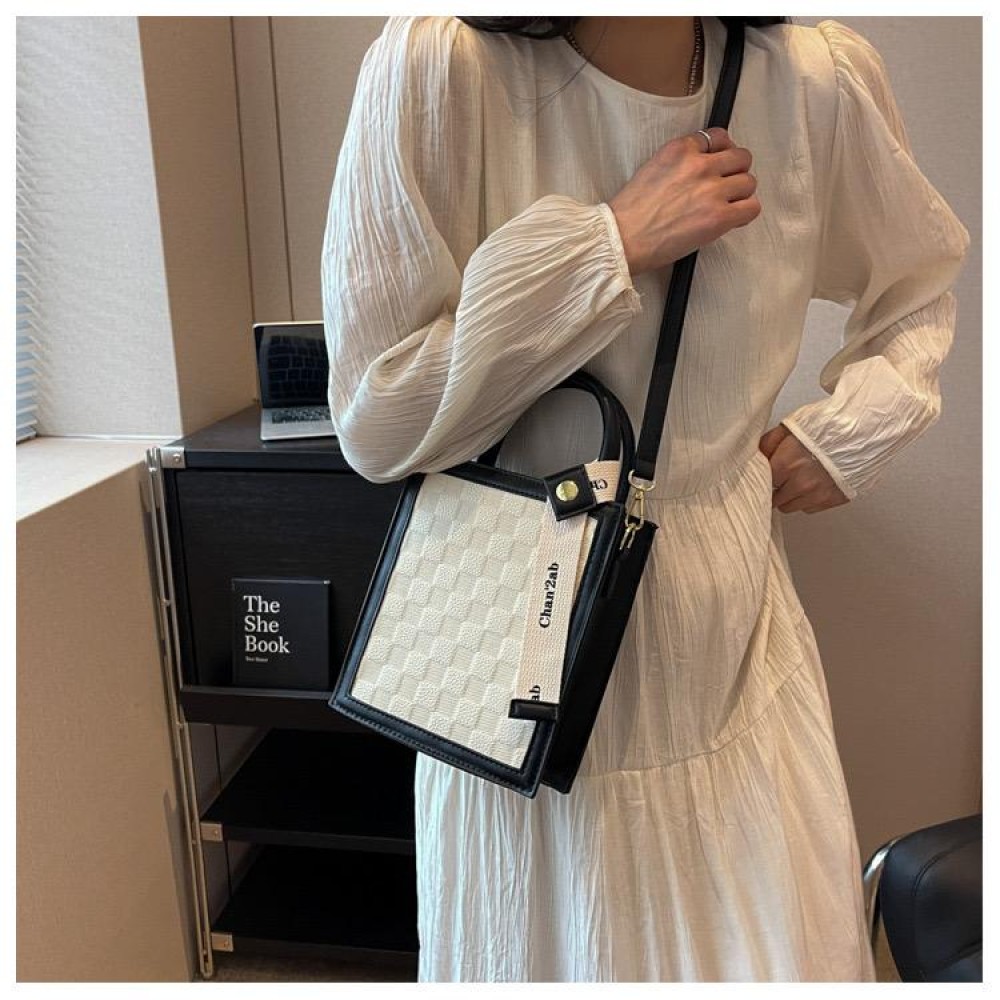 Be the first to review “Ashrykins tape décor embossed detail square bag in Cream and Black”