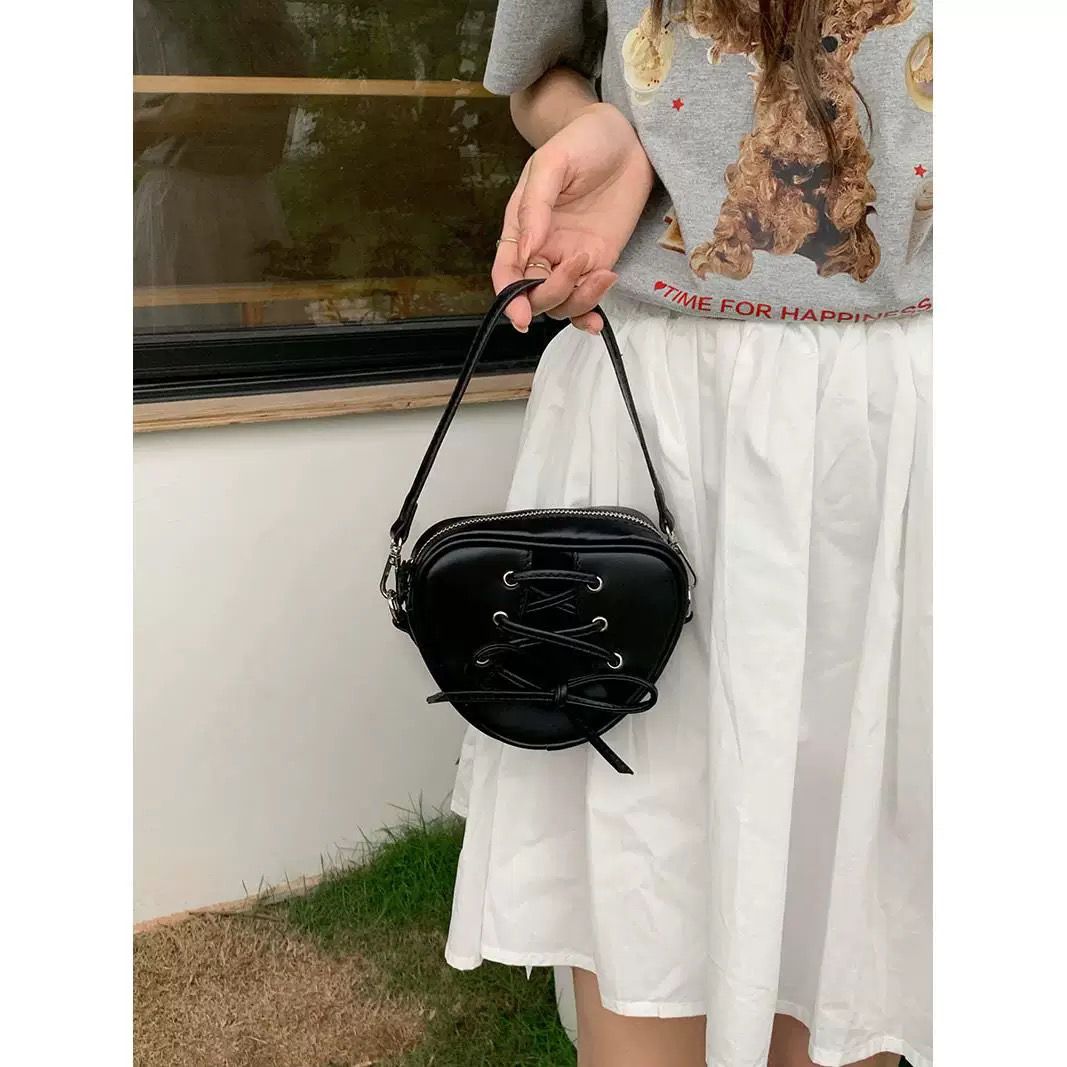 Make a statement with The Heartbreaker Tote, a bag that blends fierce attitude with feminine edge. Designed in a striking heart silhouette with lace-up detailing and a sleek black finish, this tote is made for the ones who turn heads and break hearts. Whether you’re heading to brunch, a night out, or just owning the sidewalk, this bag is your ultimate main character moment.