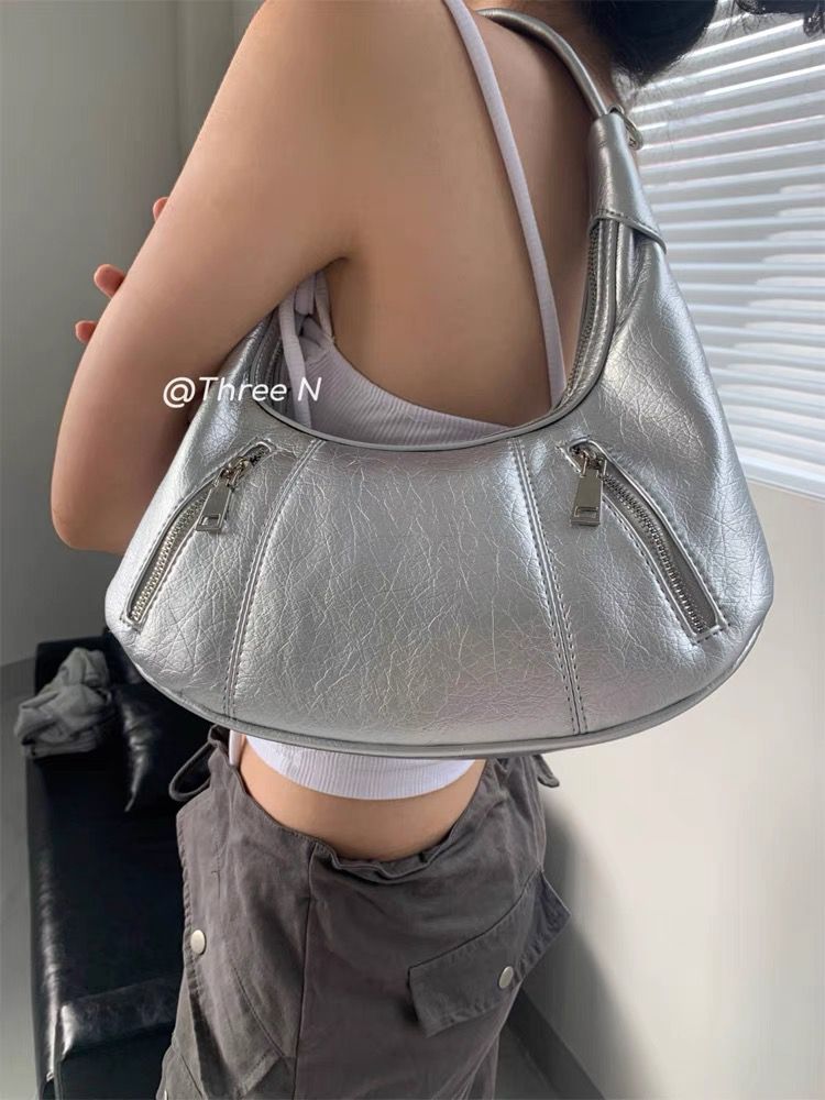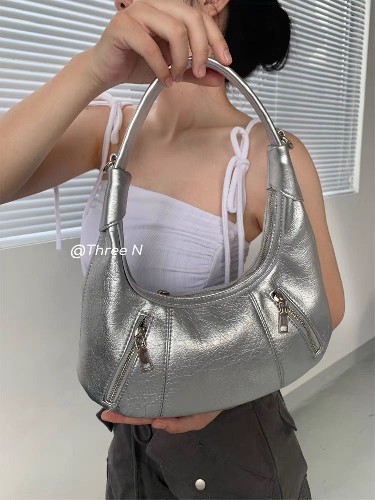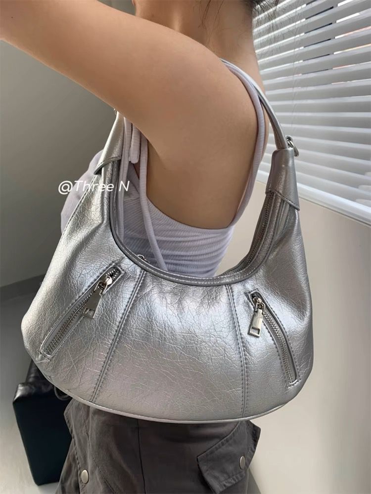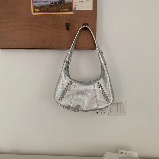 Askrykins City Hobo Round Shoulder Bag in Silver