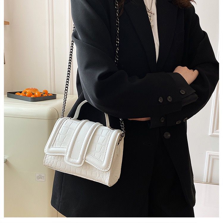 Optional cross-body strap chain strap flap Closure and Magnetic Closure. silver Tone details square Bag Crocodile Pattern and flap bag A crossbody purse matches all of your clothing. Shoulder Bag & Top handle Style: perfect as shoulder bag, crossbody bag, messenger bag, satchel bag.