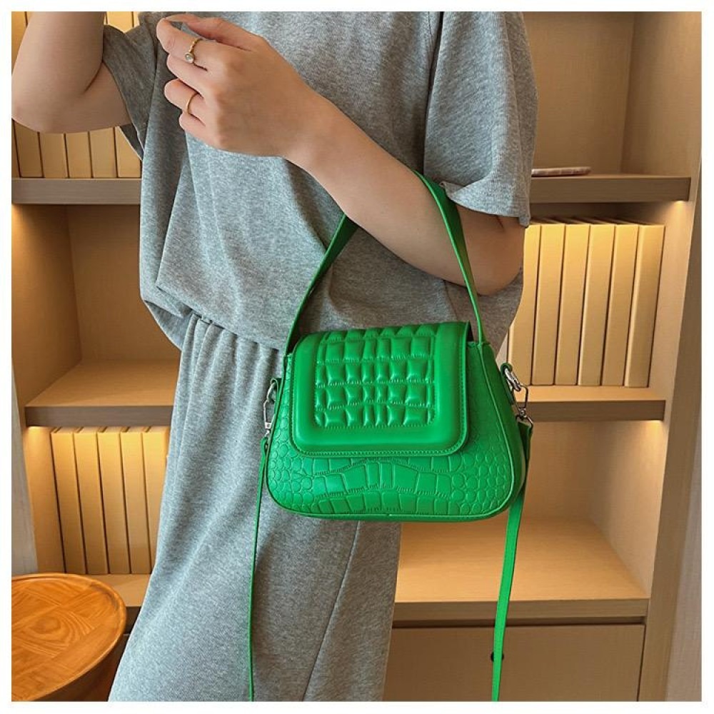 Askrykins Fashionable Saddle Crocodile Embossed Flap Bag in Green