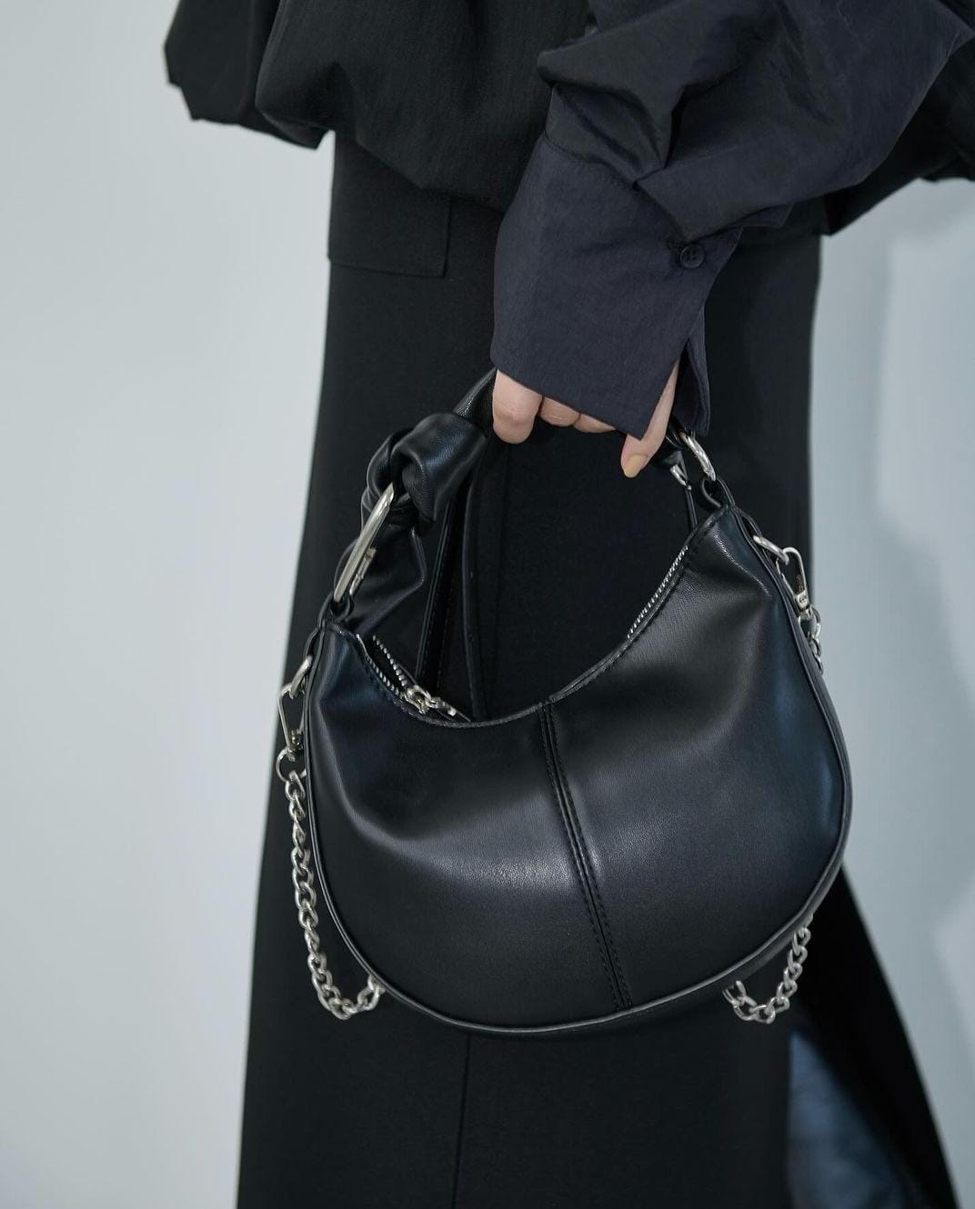 - Knotted handles and chain shoulder strap