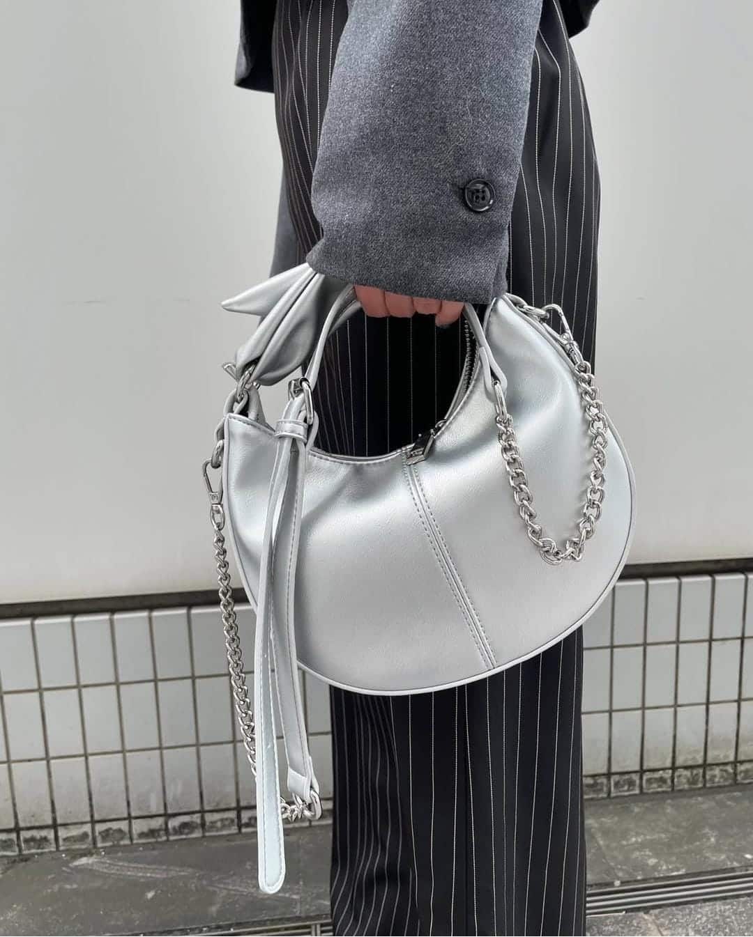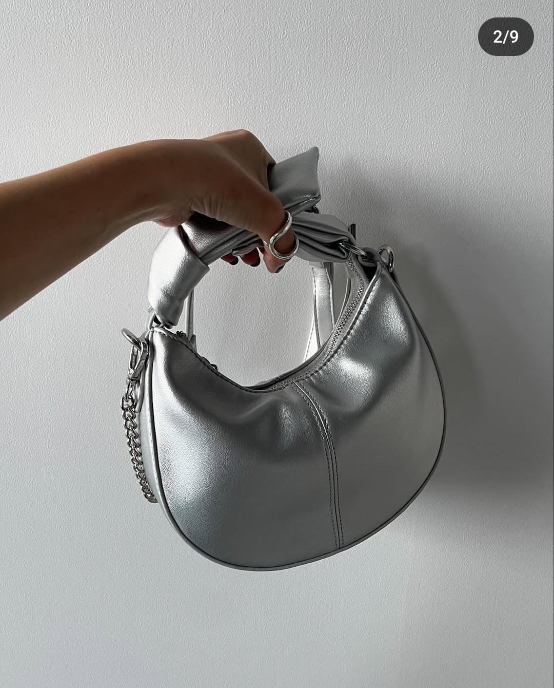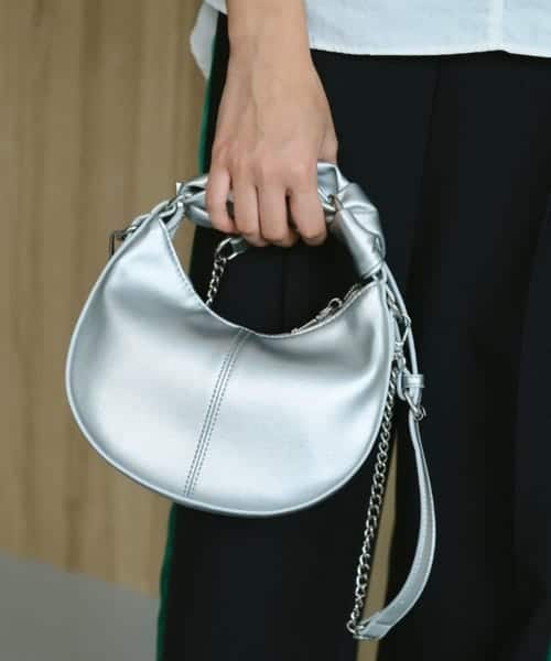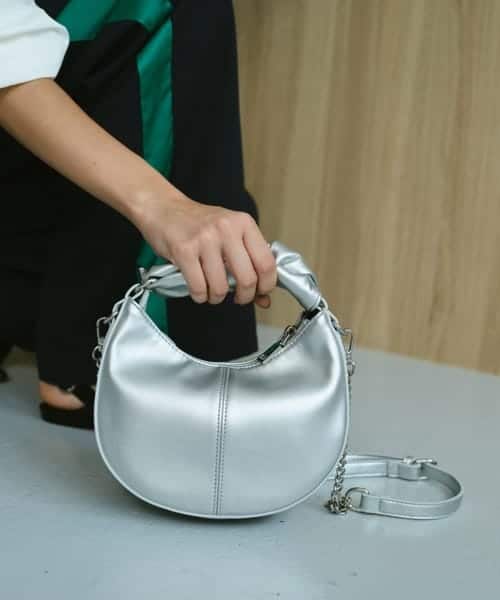 - Knotted handles and chain shoulder strap