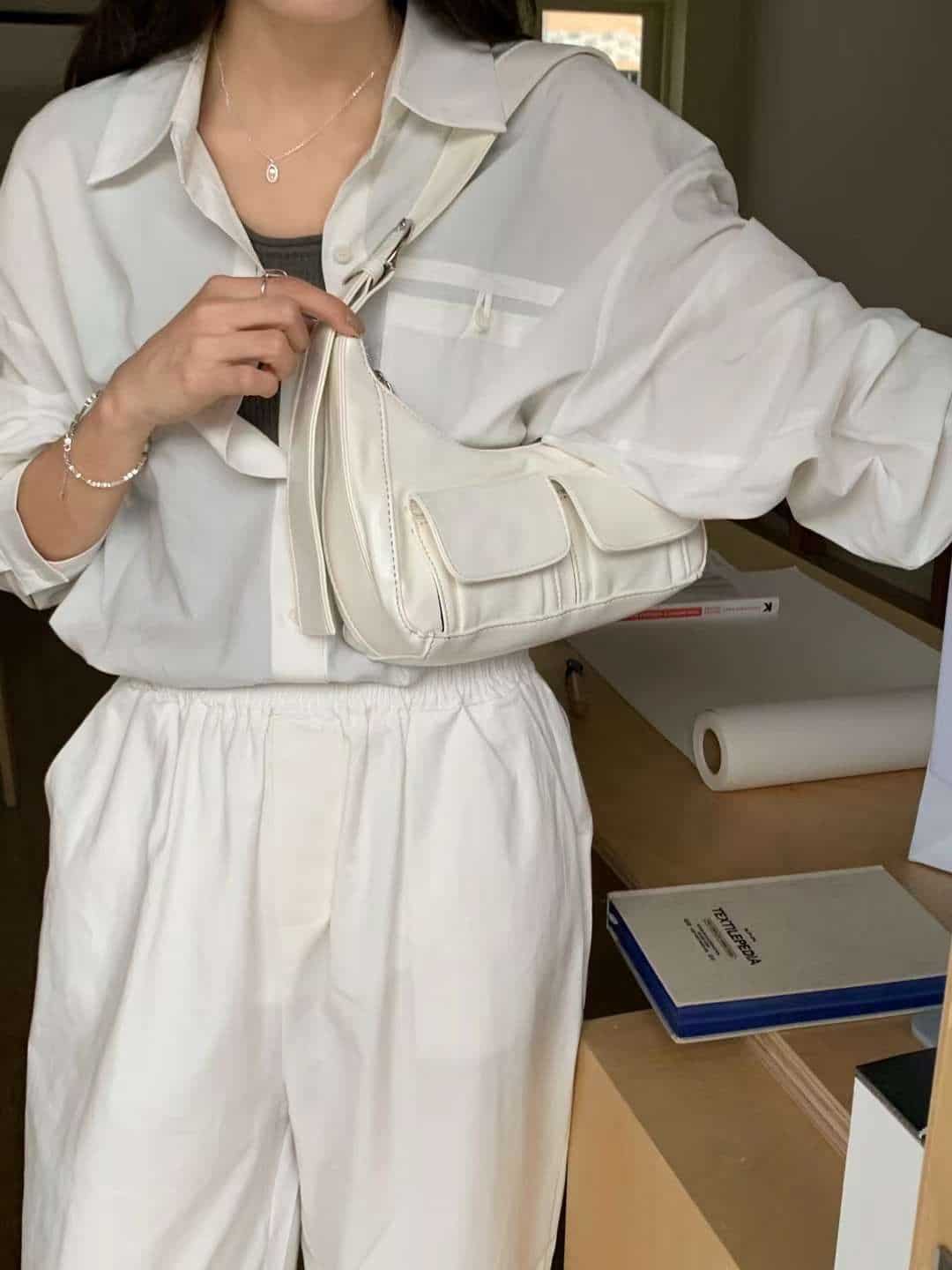 Askrykins Retro Oil Wax Pu Leather Multi Pocket Bag in White