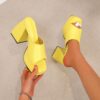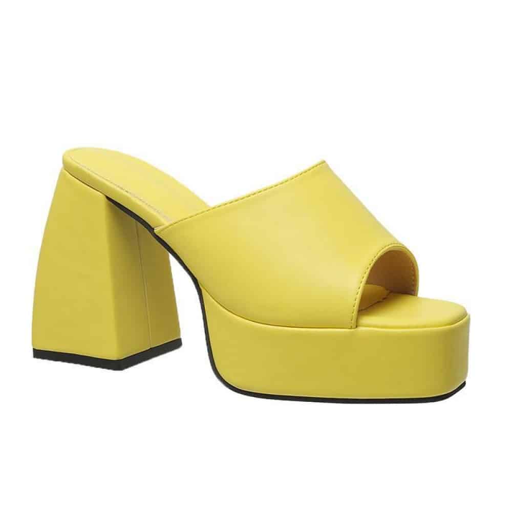 Askrykins Square Toe Mule Flared Block High Heel Sandal in Yellow