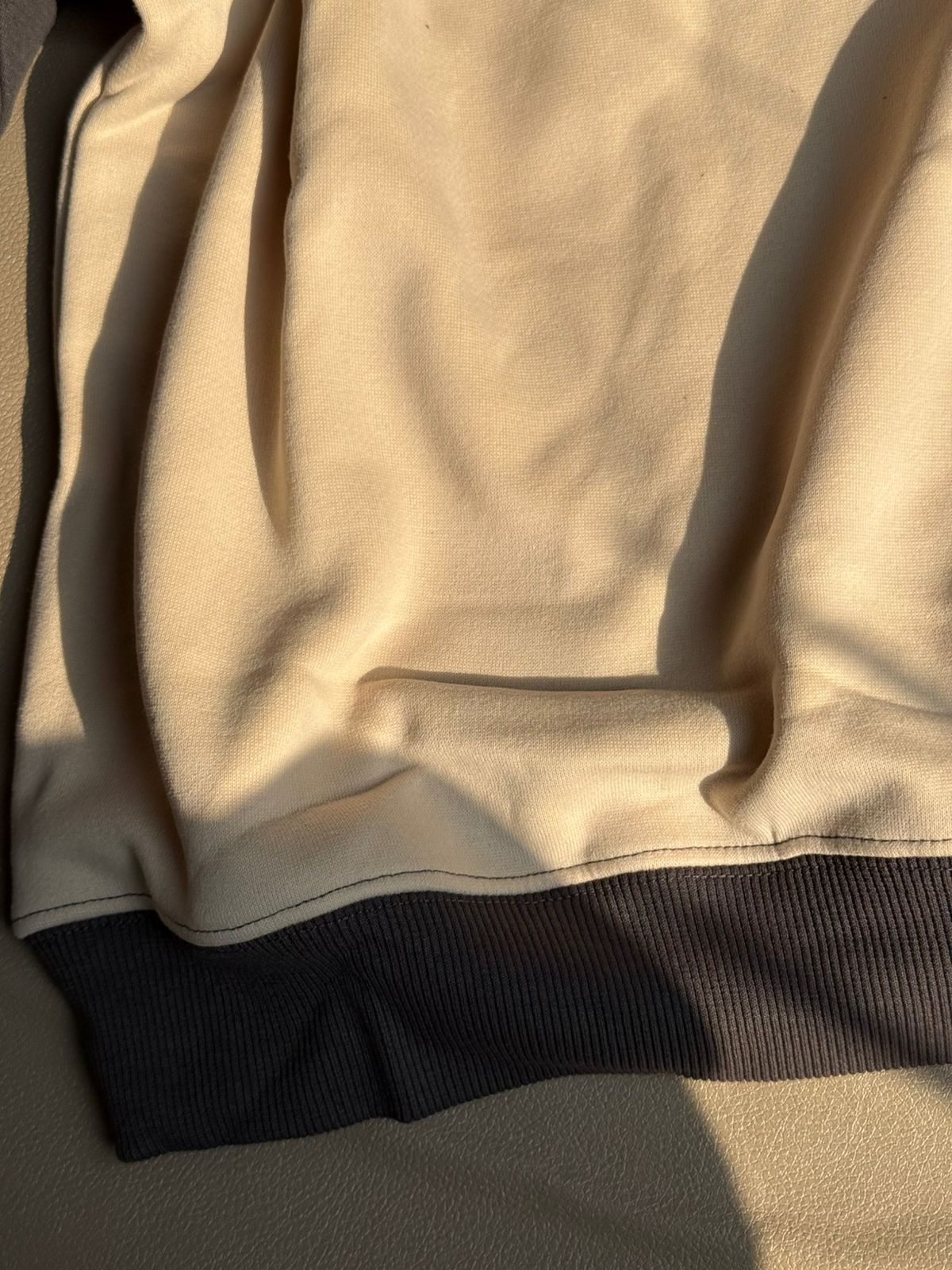 • Two-Tone Raglan Design: Trendy beige body with contrasting brown sleeves and ribbed finish.