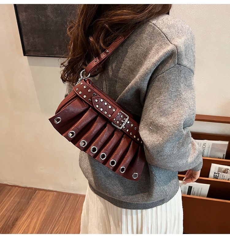 Own your moment with Belted Baddie, the shoulder bag that blends sculptural lines and vintage drama into one wearable crown. Designed with a pleated base, buckled belt loop, and gleaming metal eyelets, it gives off royal rebel vibes that work from brunch to boutique strolls — bold, refined, unforgettable.