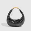 The CEO Curve is your go-to power piece from the Boss Lady Collection. Crafted in glossy black leather with a bold crescent silhouette, it’s built for women who lead with style. The padded handle features a pop of yellow—your signature highlight in a sea of neutrals. Visible stitching adds structure and polish, while the hanging strap detail brings movement and personality.