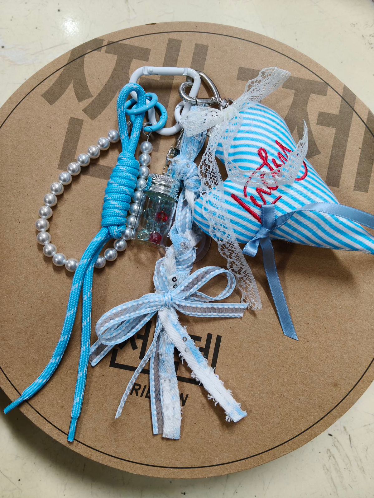 A patchwork of memories, textures, and tiny treasures—Charm Quilt brings together lace, paracord, pearls, and stitched hearts in a soft, sentimental bundle. Each charm feels like a piece of a story: the embroidered heart whispers affection, the braided cord adds strength, and the delicate lace wraps it all in warmth. Clip it onto your bag, keychain, or wristlet for a touch of handcrafted charm that feels personal and poetic.