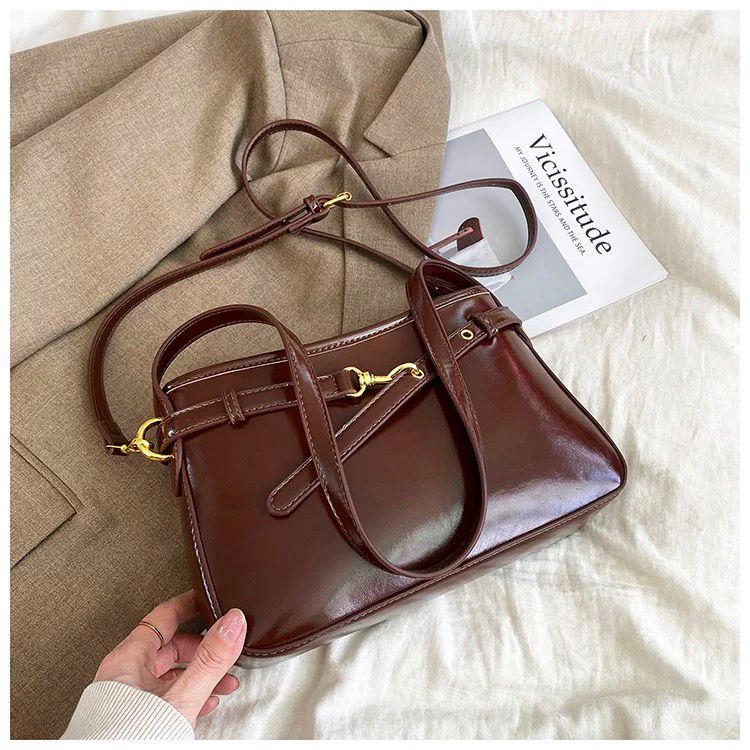 - Material: Soft synthetic leather with glossy finish