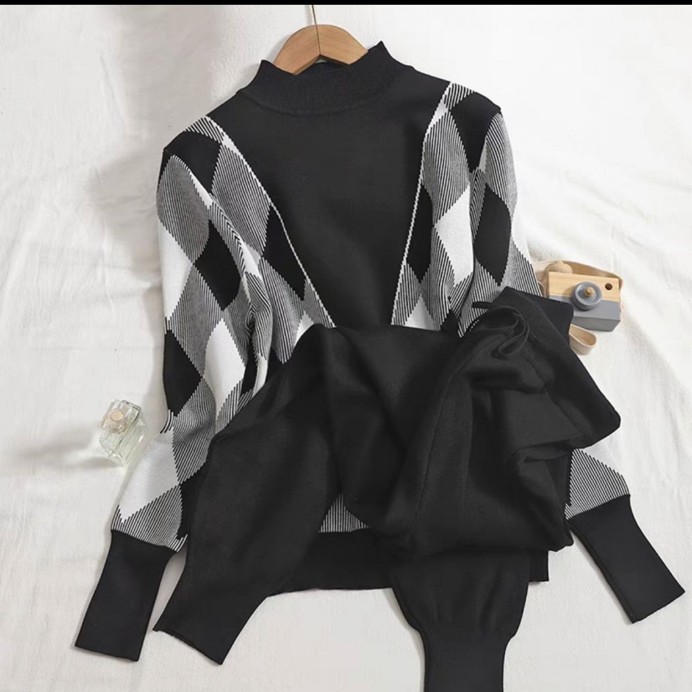 – Full Sleeves TurtleNeck Top with Diamond Cross Pattern All over