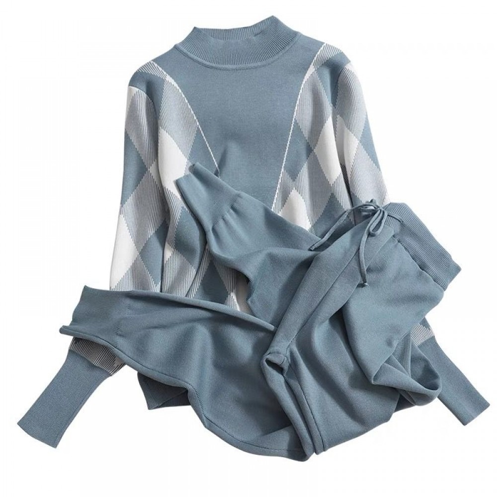– Full Sleeves TurtleNeck Top with Diamond Cross Pattern All over