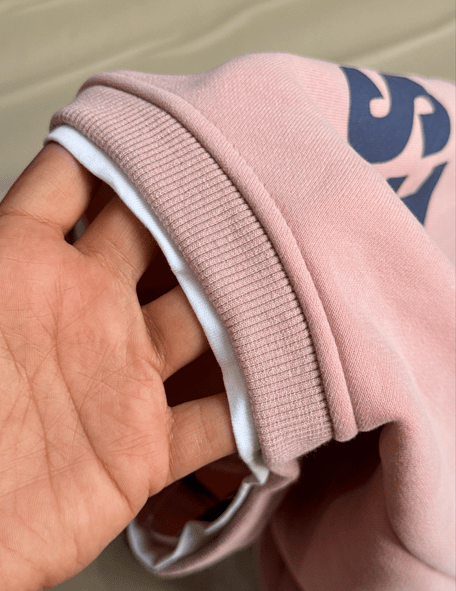 - Fabric: Mid-weight cotton blend fleece