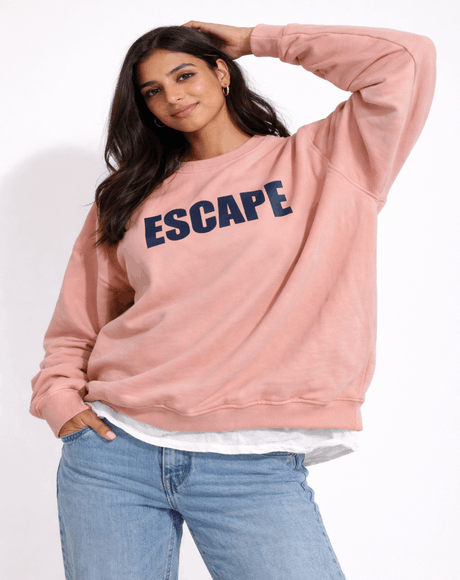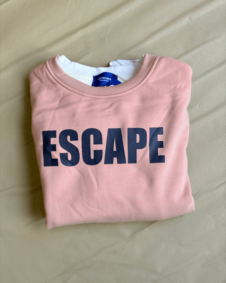 ESCAPE /001 is a capsule essential for those who crave quiet revolutions. Crafted in blush-toned fleece and stamped with bold navy lettering, this sweatshirt speaks without shouting. Whether you’re slipping off-grid or just off-duty, it wraps you in comfort while declaring your need to breathe.