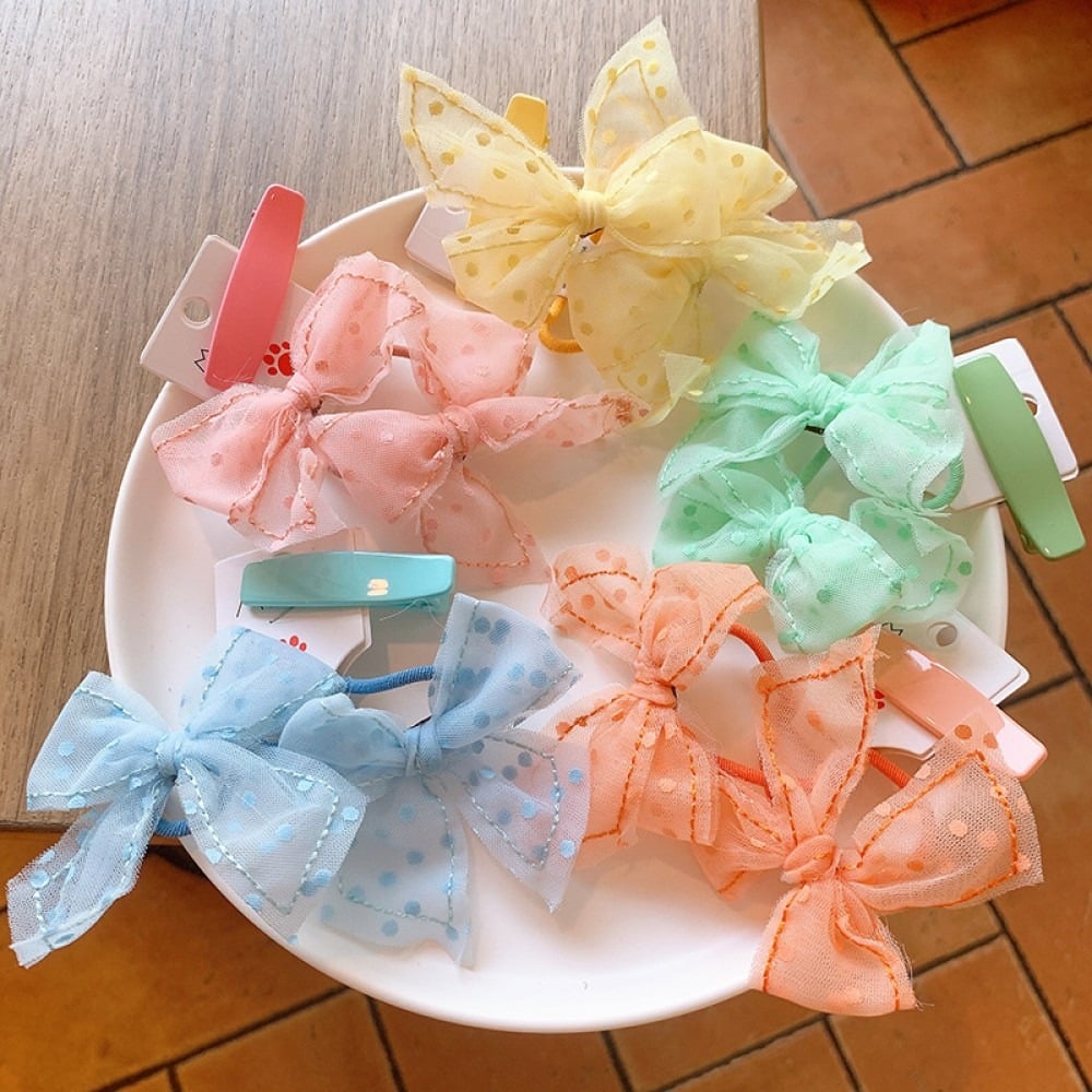 • Flowy cute bow with slim hair tie and plain clip