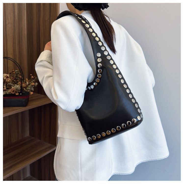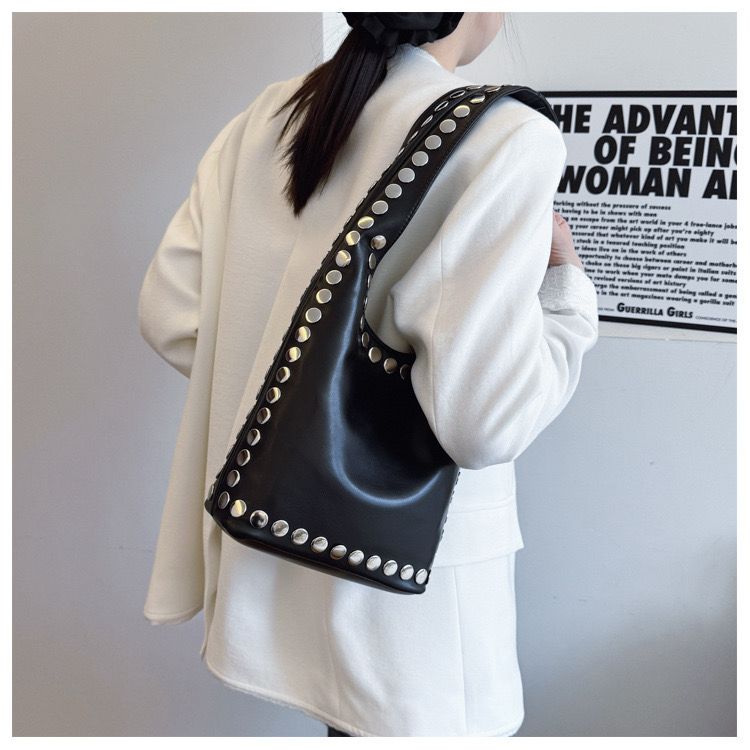 Elevate your everyday with Gleamloop, the noir tote that loops you into pure style power. With circular silver studs lining the edges and a sculptural strap design, it blends minimalist structure with rebellious charm. Lightweight yet statement-making, this piece is for days that call for presence, not just polish.