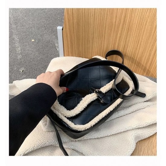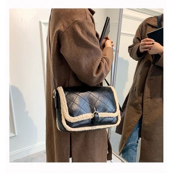 - Patent Faux Leather and Furr Trimmed Bag