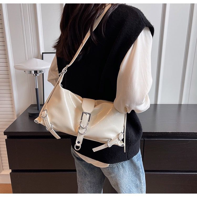 The Lunar Gleam in cream is understated elegance with a structured silhouette. Featuring a top handle, front flap with metallic buckle, and side strap detailing, this bag blends timeless charm with modern polish. Its glossy finish and refined hardware make it the perfect companion for gallery strolls, quiet power moves, or soft statement dressing.