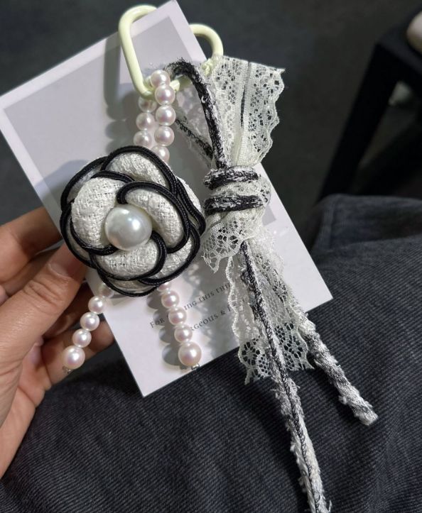 A bloom born of moonlight and quiet elegance, Midnight Bloom is a delicate statement piece that whispers vintage romance. Featuring white petals edged in black, a central pearl, and a lace bow adorned with a string of pearls, this charm evokes the grace of twilight garden parties and heirloom keepsakes. Clip it to your bag, charm chain, or wear it as a soft accent to elevate your everyday.