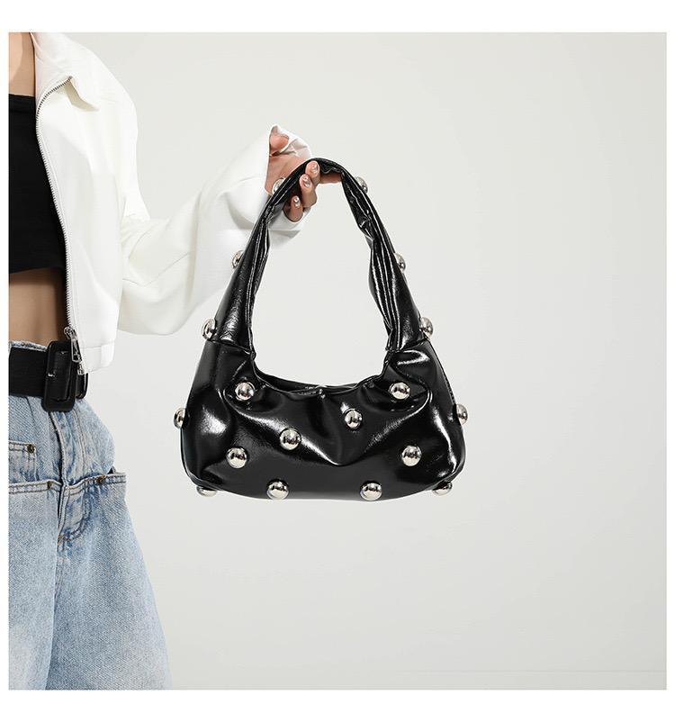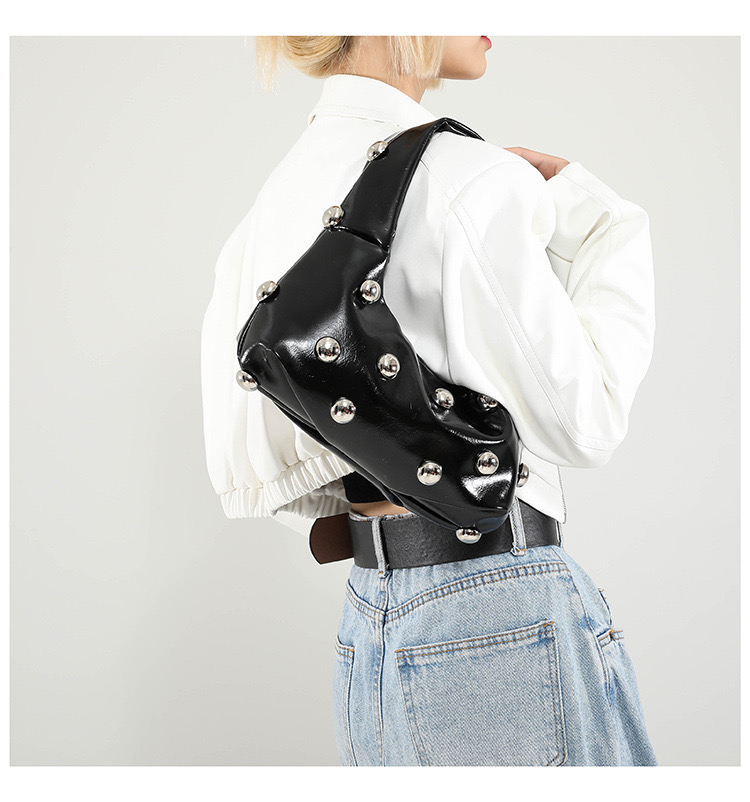 The Midnight Rebel in black is a silent style manifesto. With a glossy finish and polished silver studs, this shoulder bag delivers gritty boujee energy in a refined silhouette. Its padded handle and slouchy shape make it effortlessly wearable, while the hardware adds just enough edge. For the cool girl who defines luxury on her own terms.