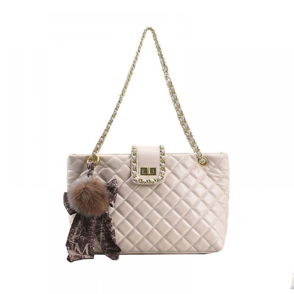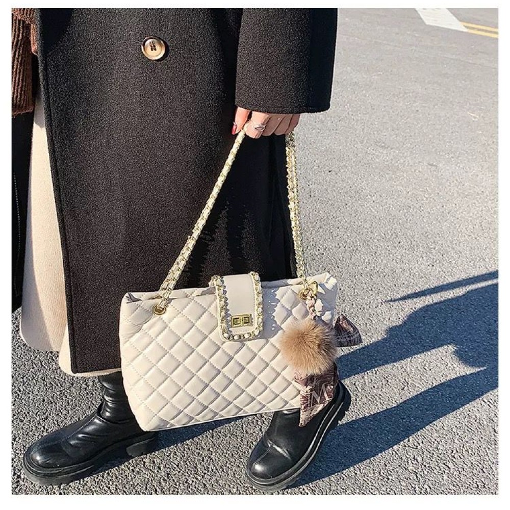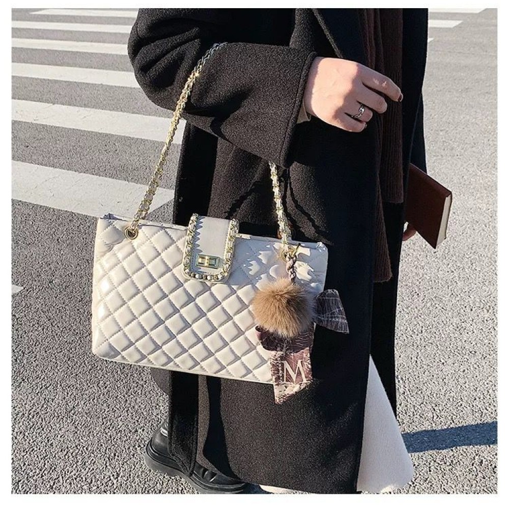Ashrykins Textured Handbag • Diamond Quilted Pattern • Adjustable Movable Chain Handle Straps • Flap Top Detail • Twist and Lock Closure • Fur Pom Detail • Gold Tone Details Note: Please note that the colour might very a little because of different lights in which the product has been shot.