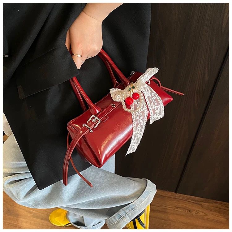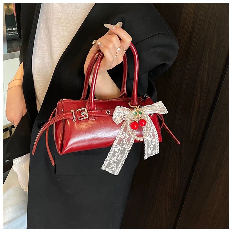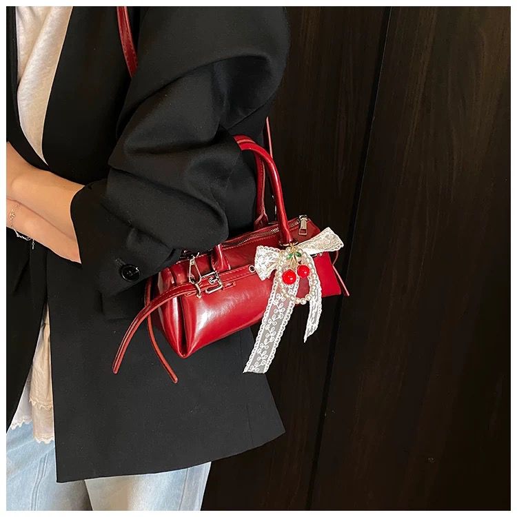 Add a pop of playful elegance with Cherry Prance, the mini shoulder bag that dances between classic gloss and whimsical detail. Its rich red sheen, compact shape, and bow-tied cherry charm make it your perfect plus-one for café dates, gallery strolls, or whenever you want to sprinkle sweetness with style.
