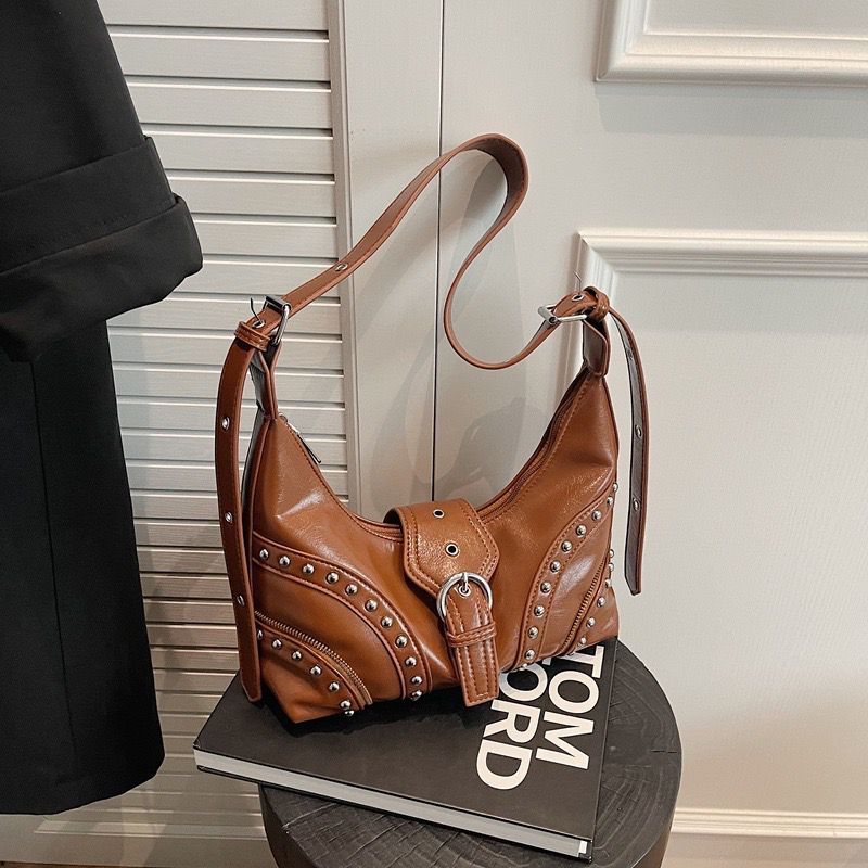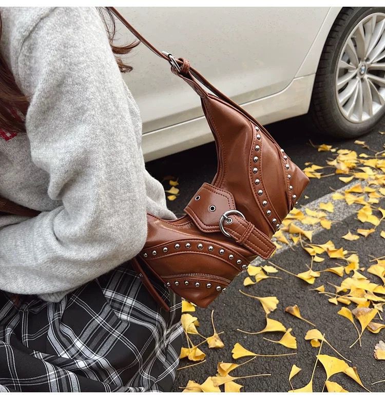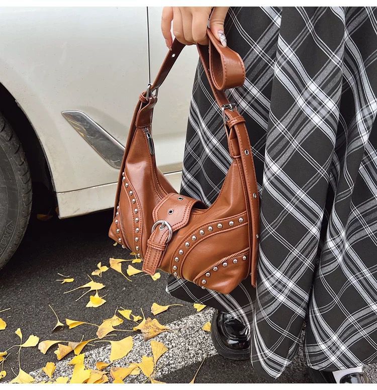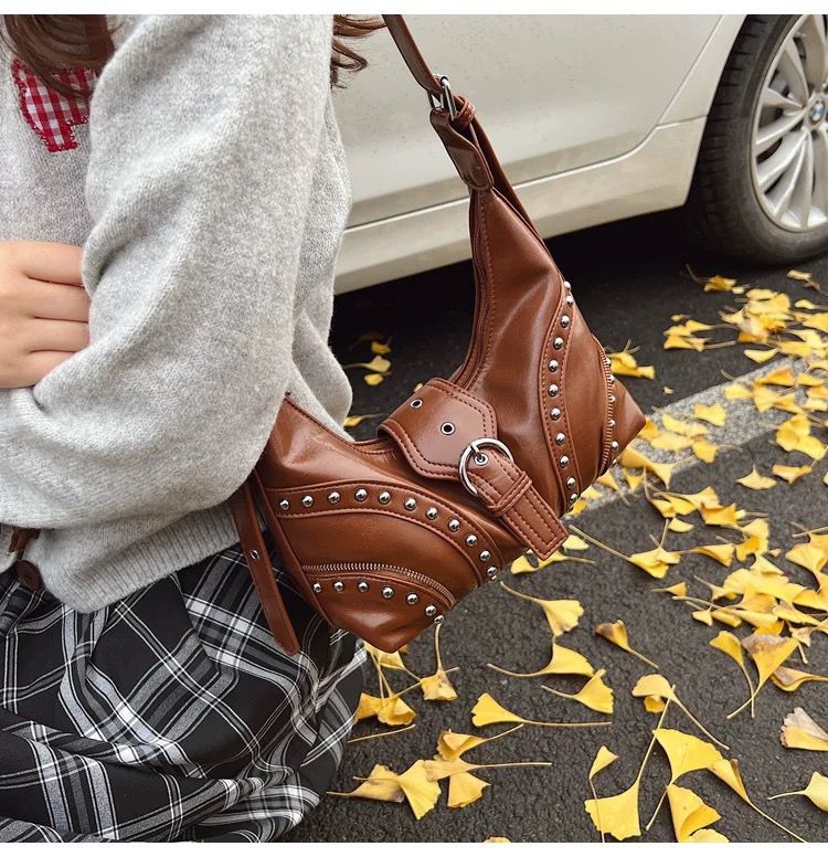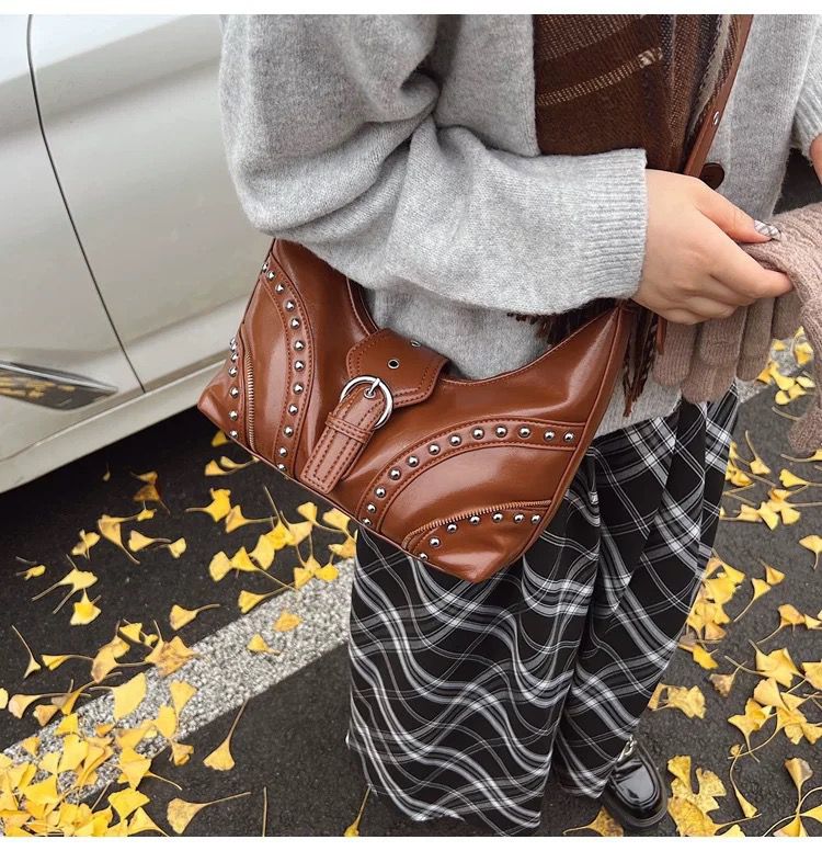 •  Details: Studded bag design with metal eyelet embellishments for a punk-chic