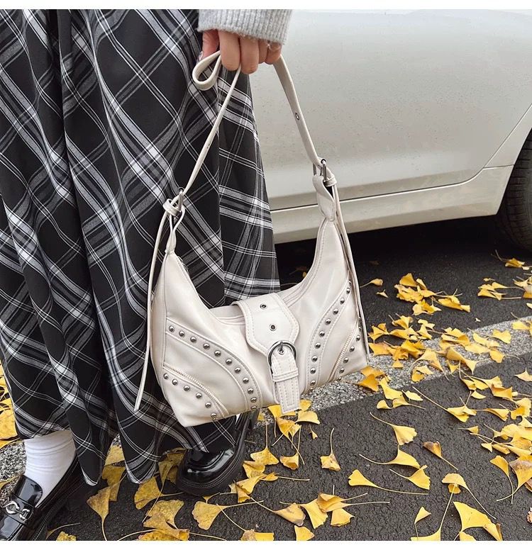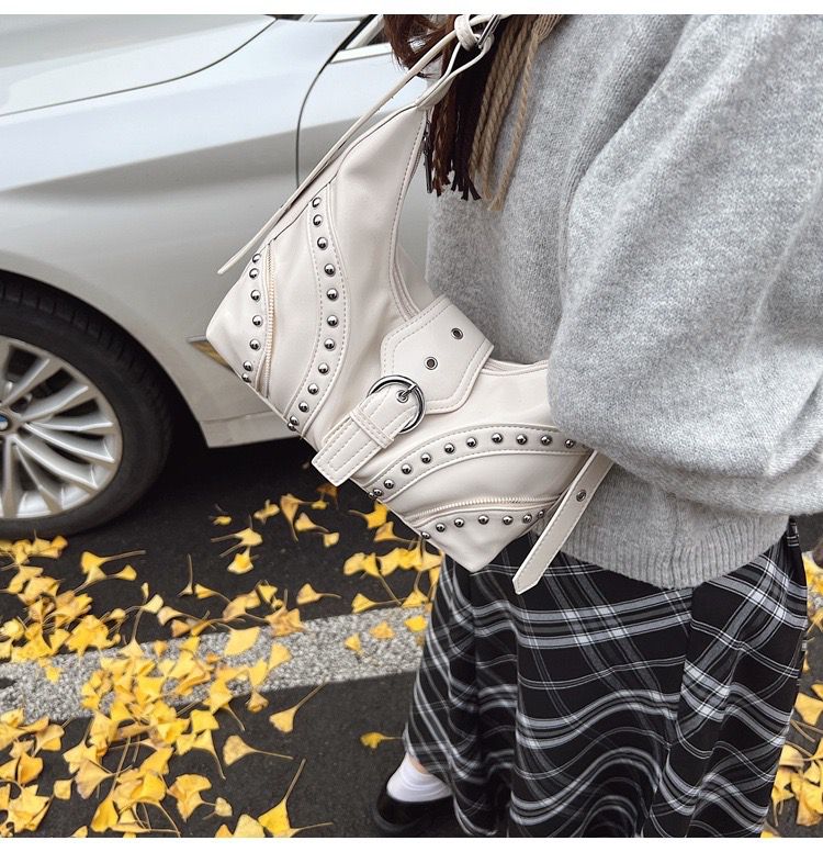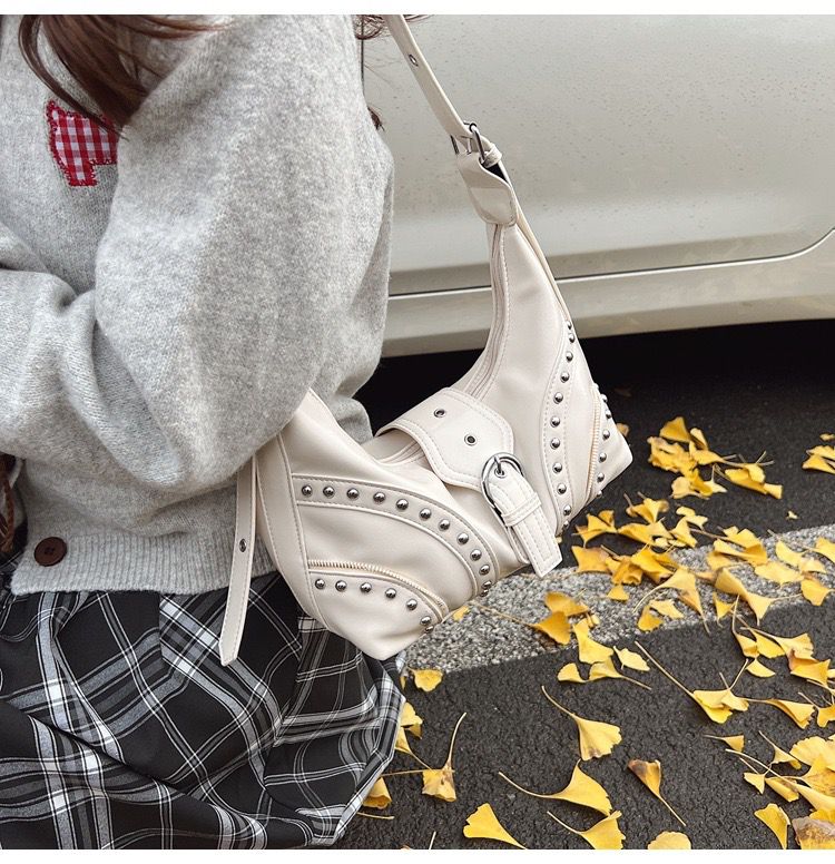 •  Details: Studded bag design with metal eyelet embellishments for a punk-chic