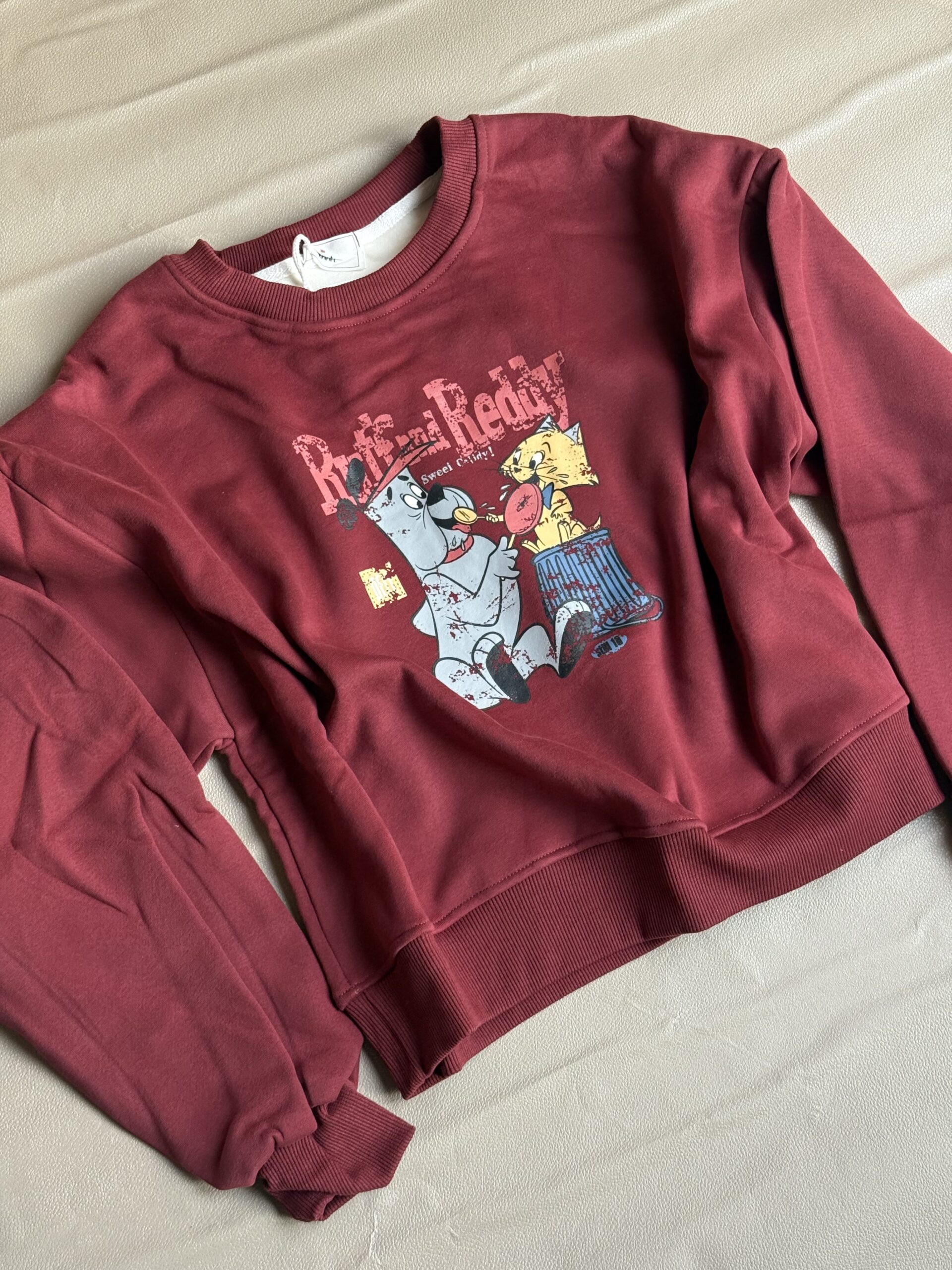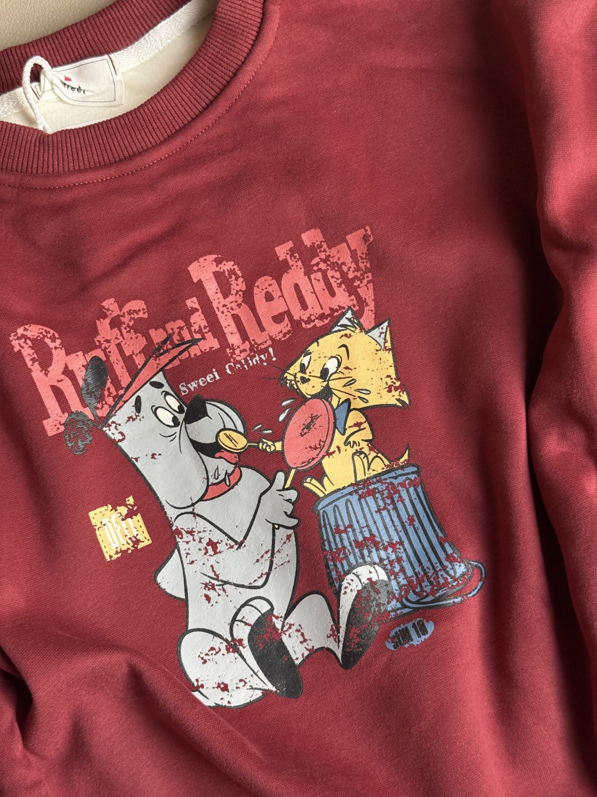 Playful Cartoon Print: Features a cute “Rat & Reddy” vintage-style character graphic that adds fun to your winter wardrobe.