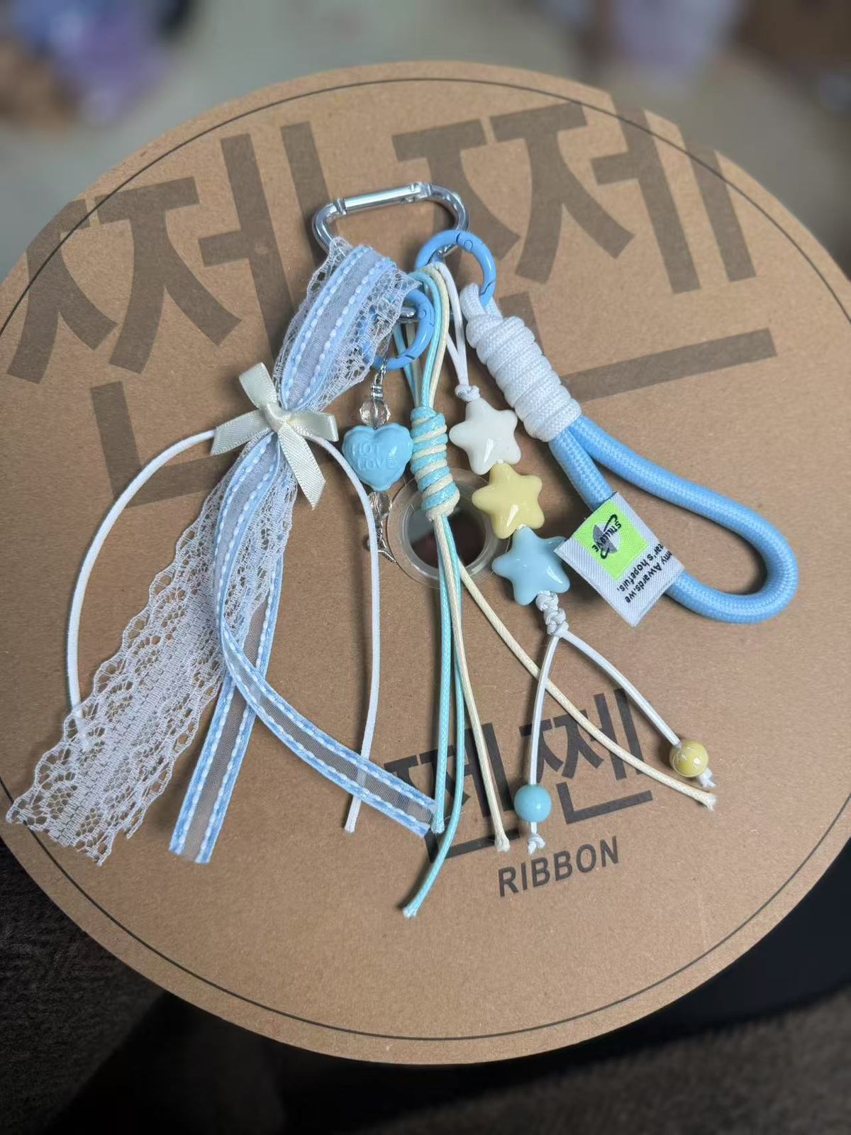 - Includes: Star beads, “FOR LOVE” heart charm, butterfly tag, wrapped cord, layered ribbons