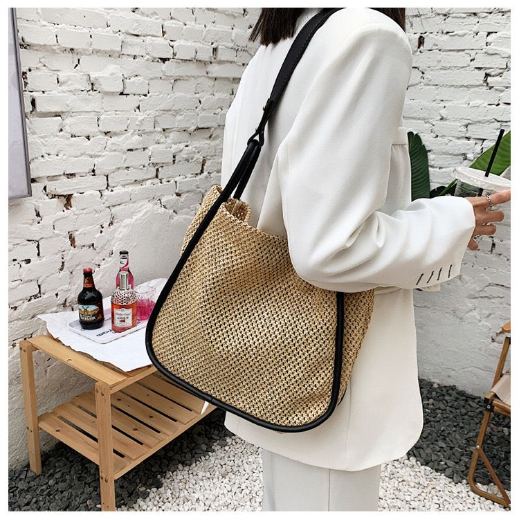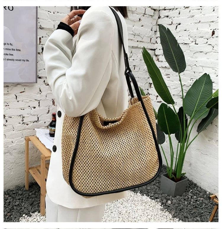 Bring textured tranquility into your wardrobe with Strawbend, a structured shoulder muse woven from sunlit straw and framed in bold black trim. With dual handles and a spacious interior, it blends countryside warmth with city polish. It’s a bag made for gallery hops, park reads, and everywhere in between.