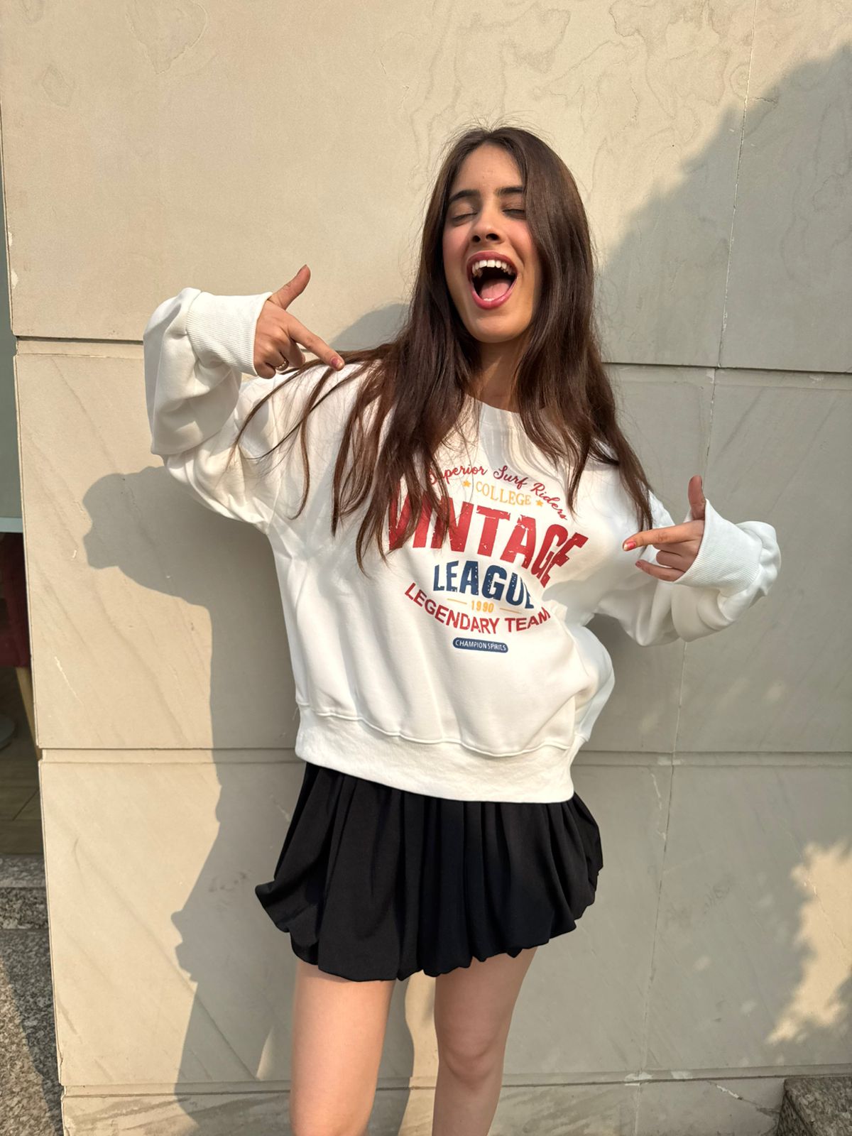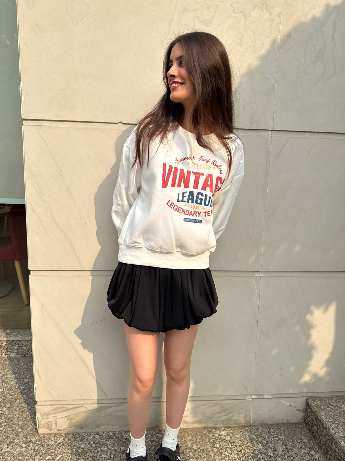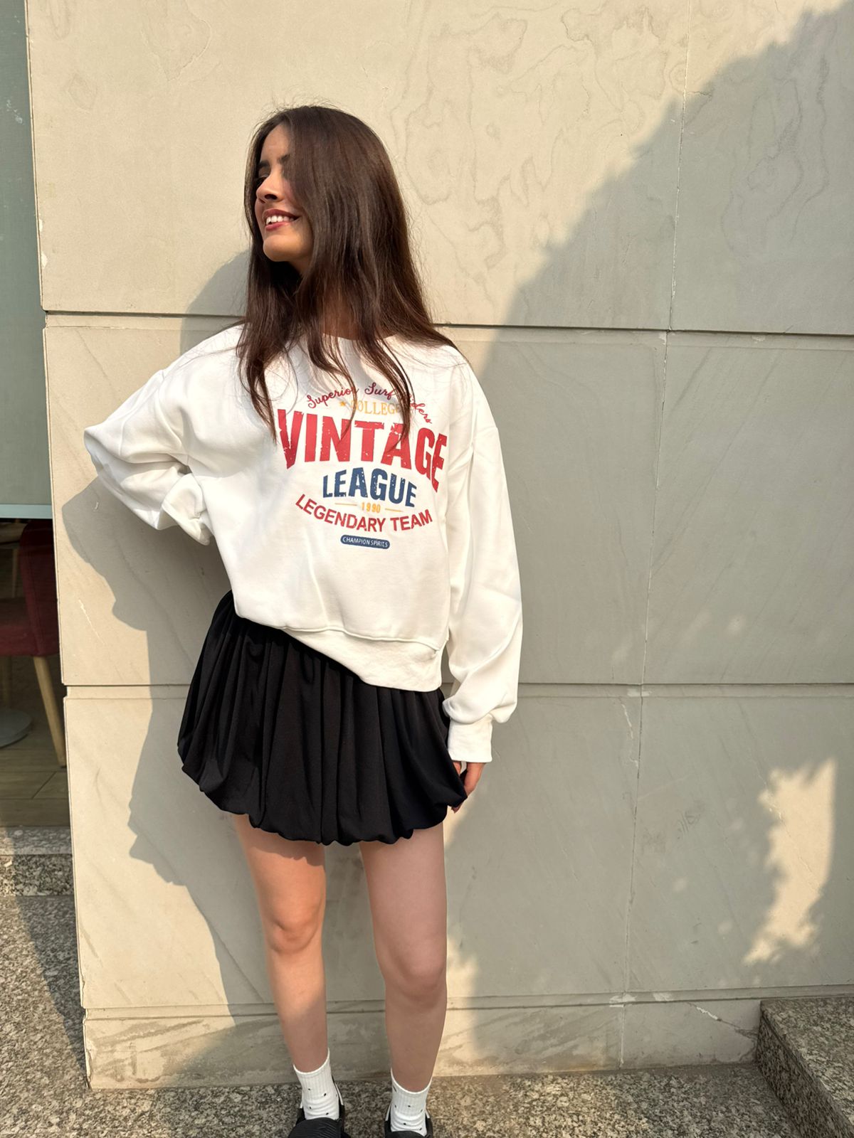 Stay comfy and stylish with this trendy Vintage League Legendary Team printed oversized sweatshirt. Made for everyday comfort, it pairs perfectly with skirts, denims, joggers, or shorts. Soft fabric and relaxed fit make it ideal for college, outings, and casual streetwear looks.
